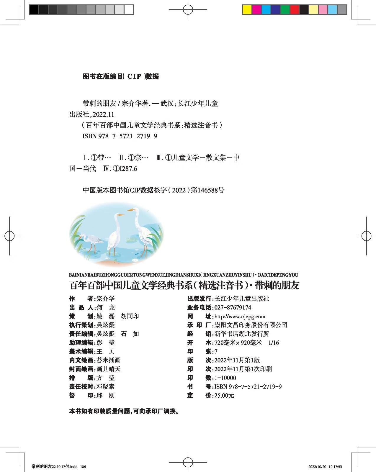 Amigo espinhoso Zong Jie Hua Cai Tu Zhuyin Edição 100 anos de livros clássicos sobre literatura infantil chinesa Série 6-7-