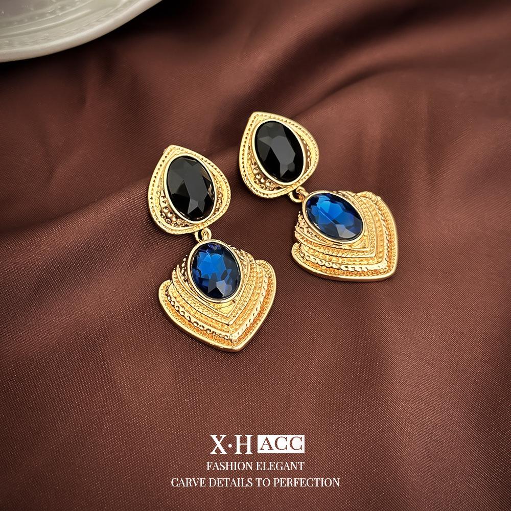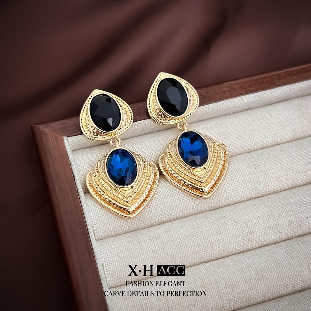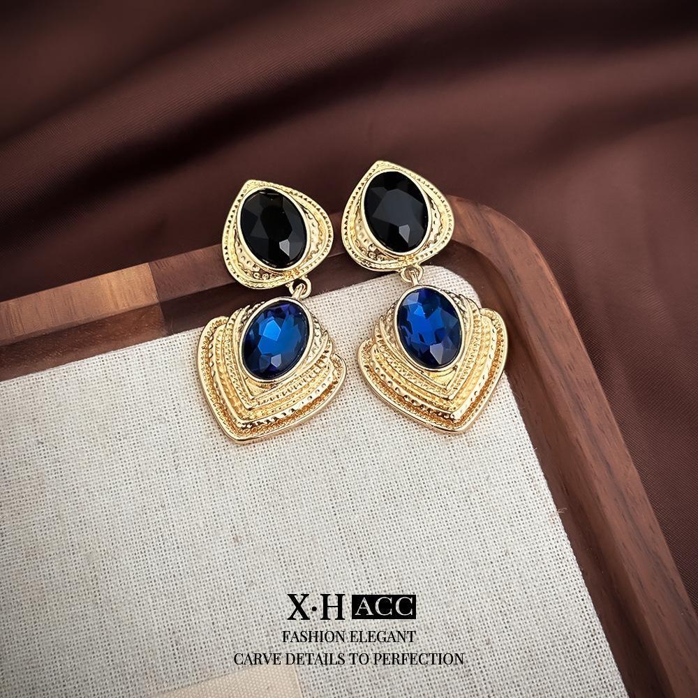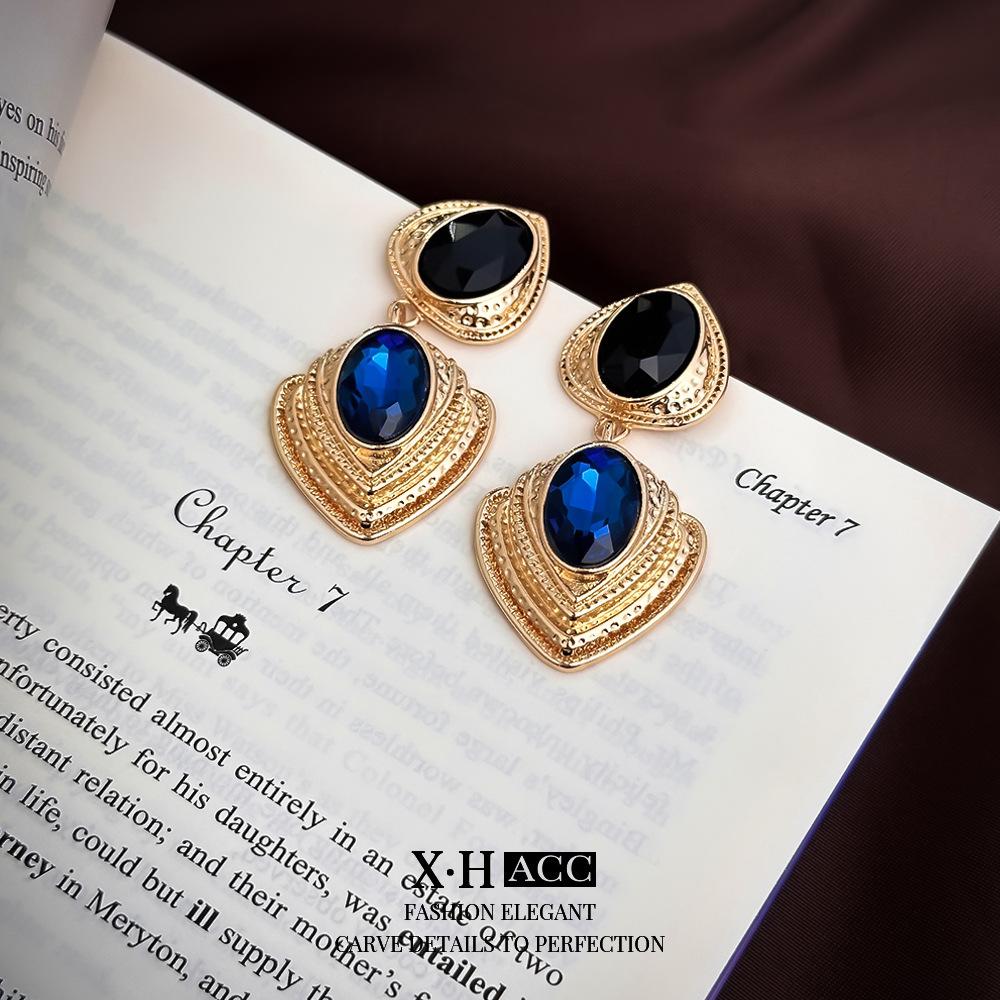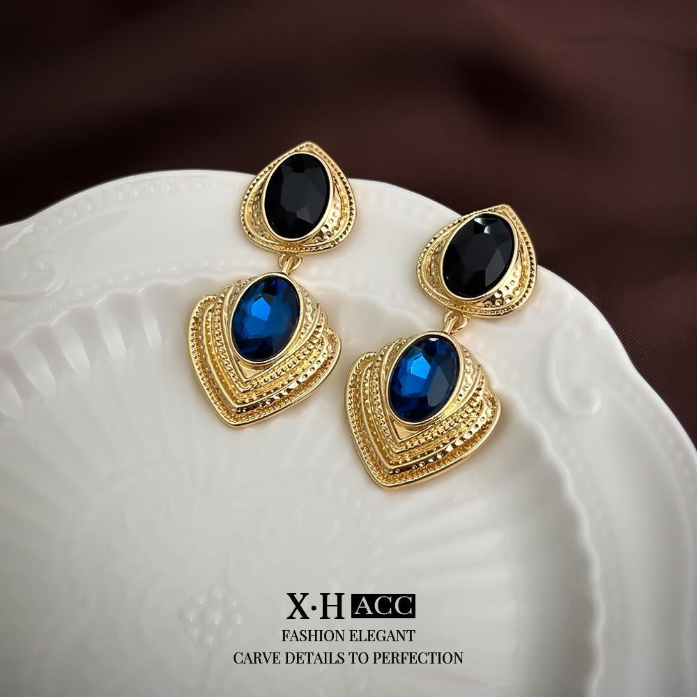 Compre Brincos de diamante de luxo leve vintage vintage antigo médio e americano moda retro brincos exagerados brincos avançados no atacado no Joom.pro