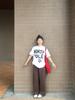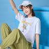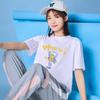 Camiseta de manga curta para estudantes do sexo feminino, tendência verão 2023, nova gola redonda, solta, simples, estampada, estilo Harajuku, top