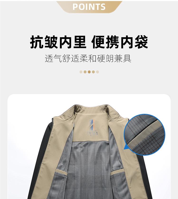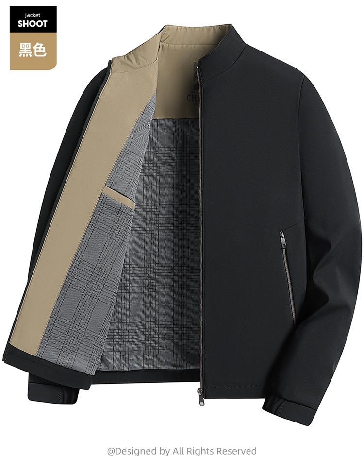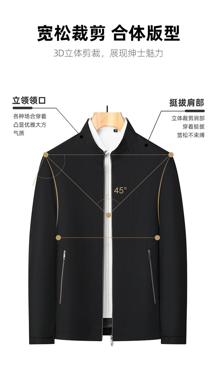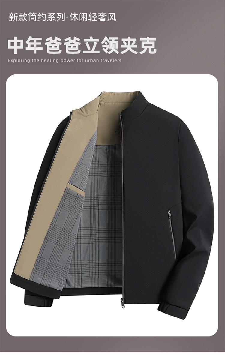 Jaqueta de alta qualidade Jaqueta masculina de primavera e outono Jaqueta de negócios masculina de gola vertical resistente a rugas para todos os jogos Jaqueta casual de meia-idade