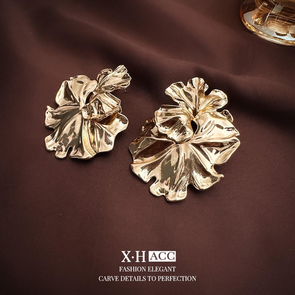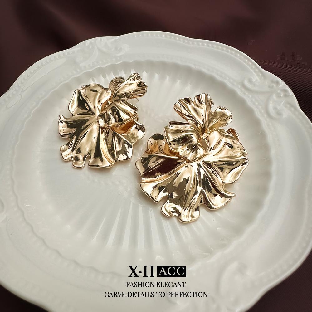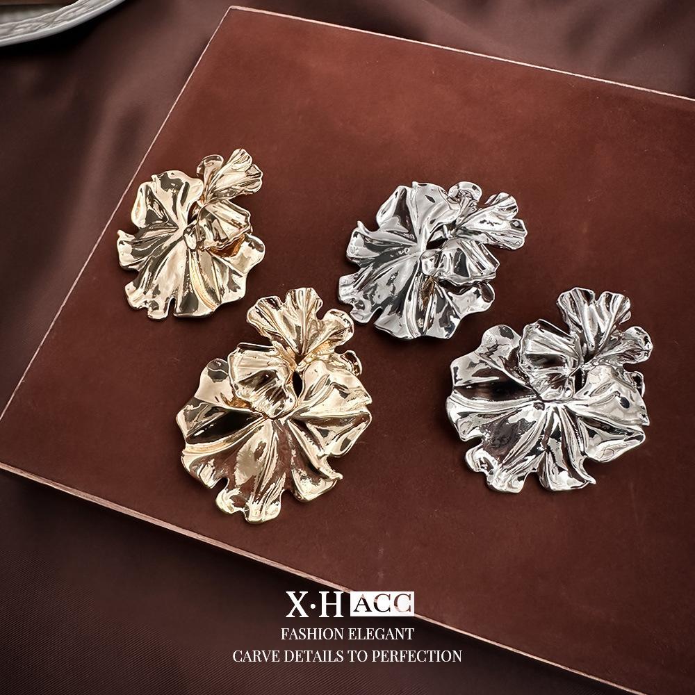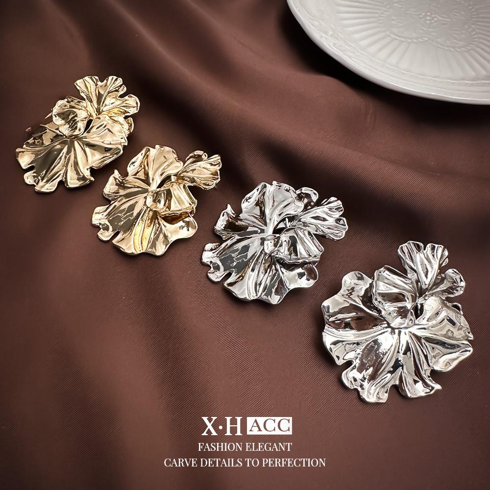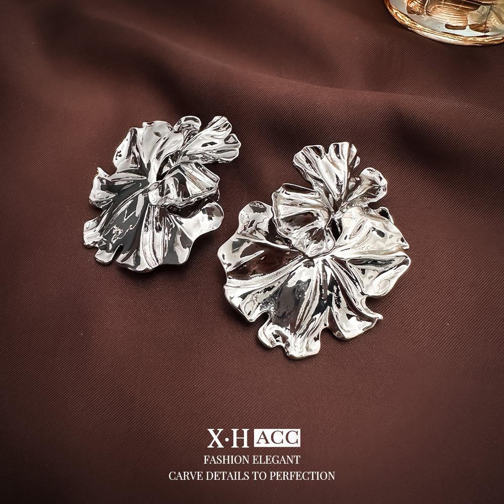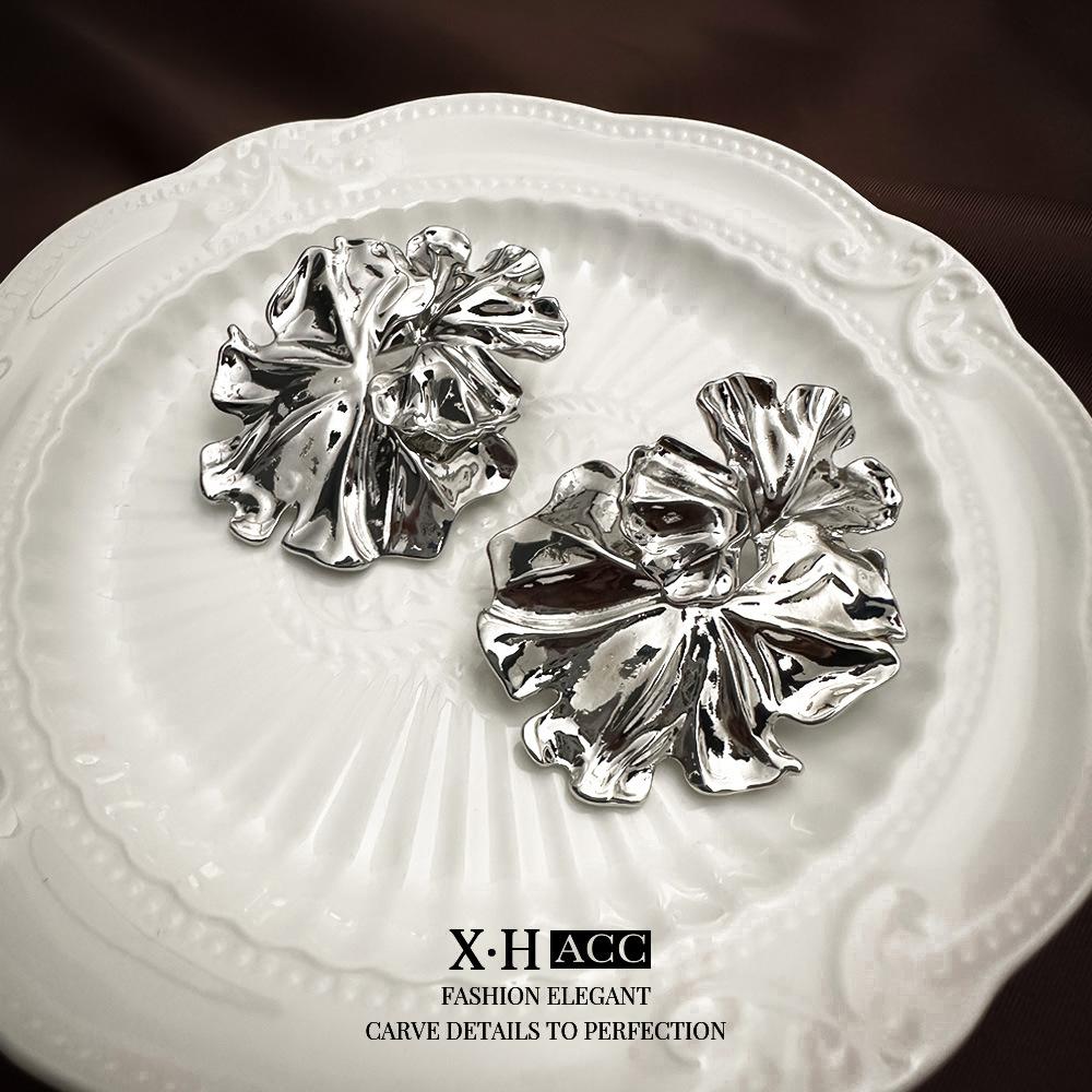Agulha de prata simples textura de metal folha de lótus flor brincos moda feminina high-end sentido brincos elegantes brincos exclusivos atacado