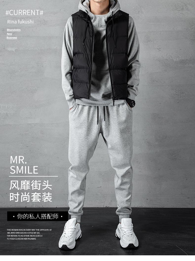[fleece-lined three-piece set] hooded sweater vest suit-gray