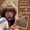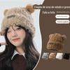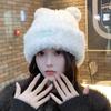 Bonito Urso Fofo Chapéu Mulheres Inverno Quente Engrossado Lã Saco Chapéu Outono e Inverno Cabeça Grande Wai Face Pequeno Chapéu de Malha