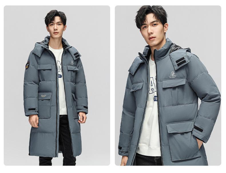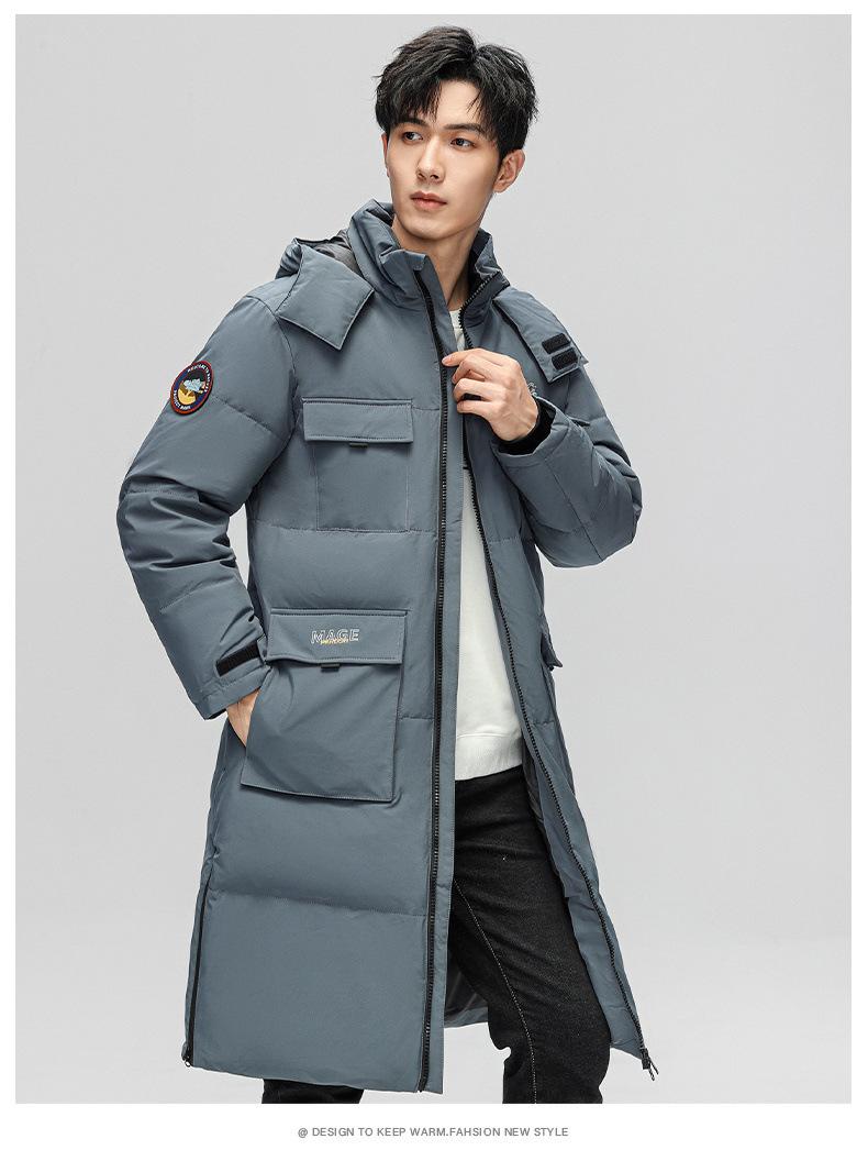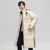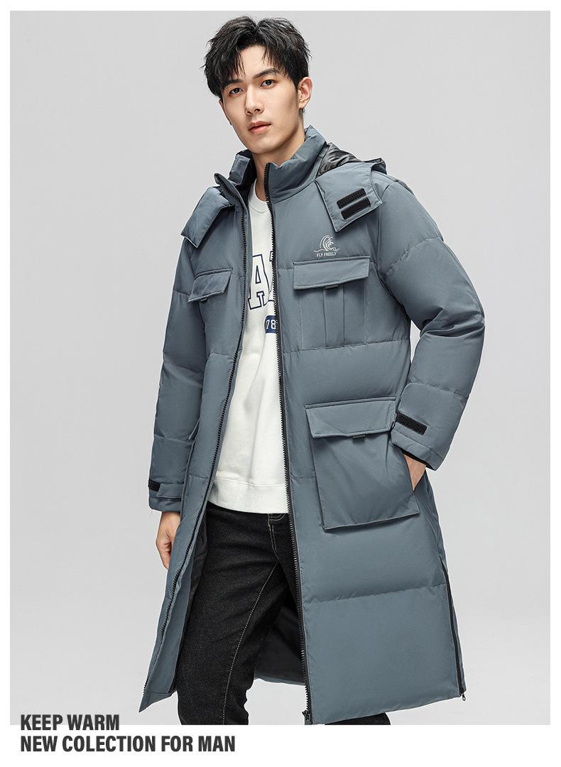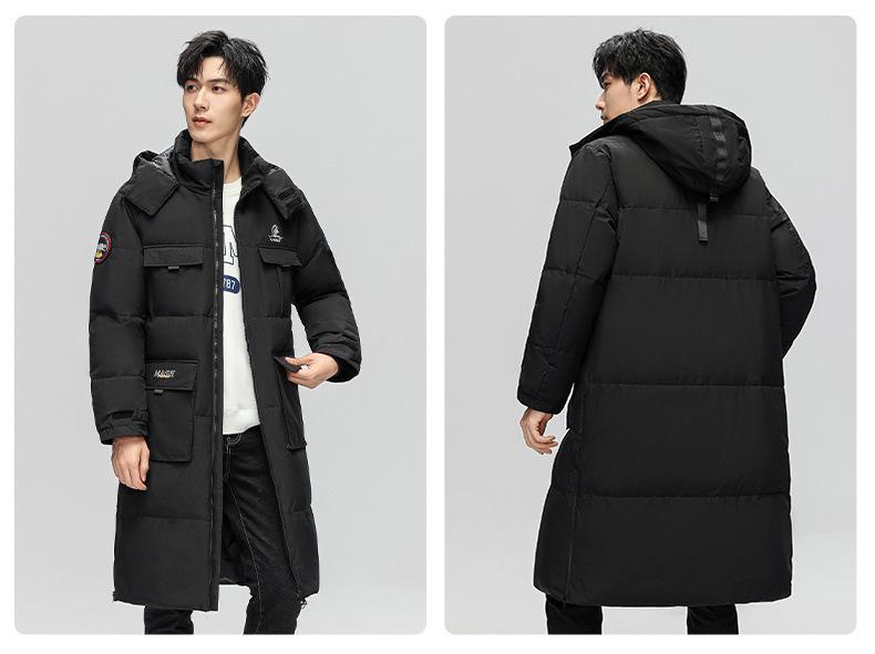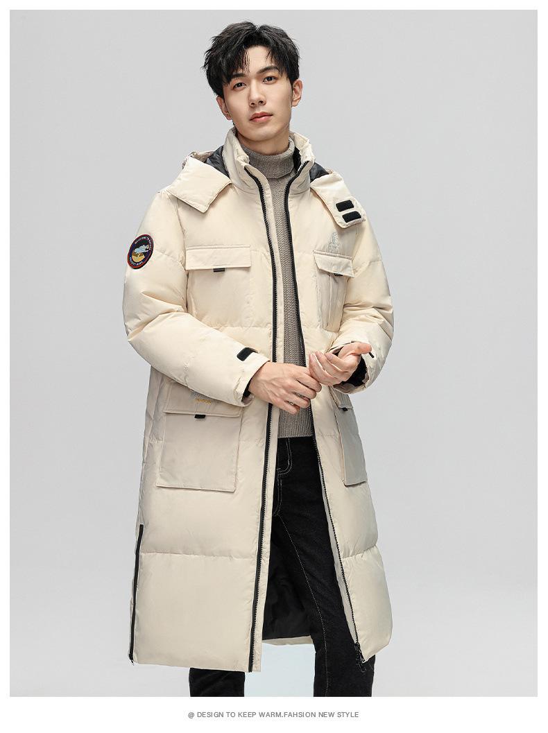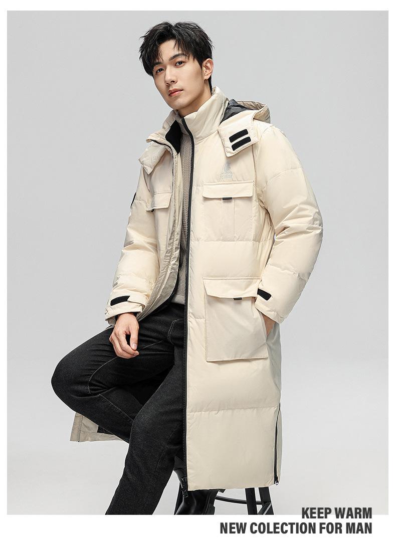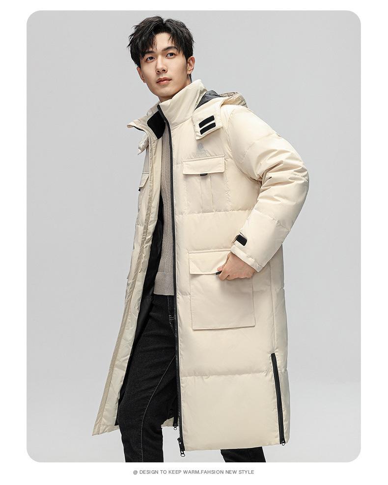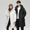 Jaqueta de penas masculina de comprimento médio e longo 90, jaqueta com capuz de penas de pato branco, moda de inverno, tamanho grande, casaco quente e grosso para casais, para homens