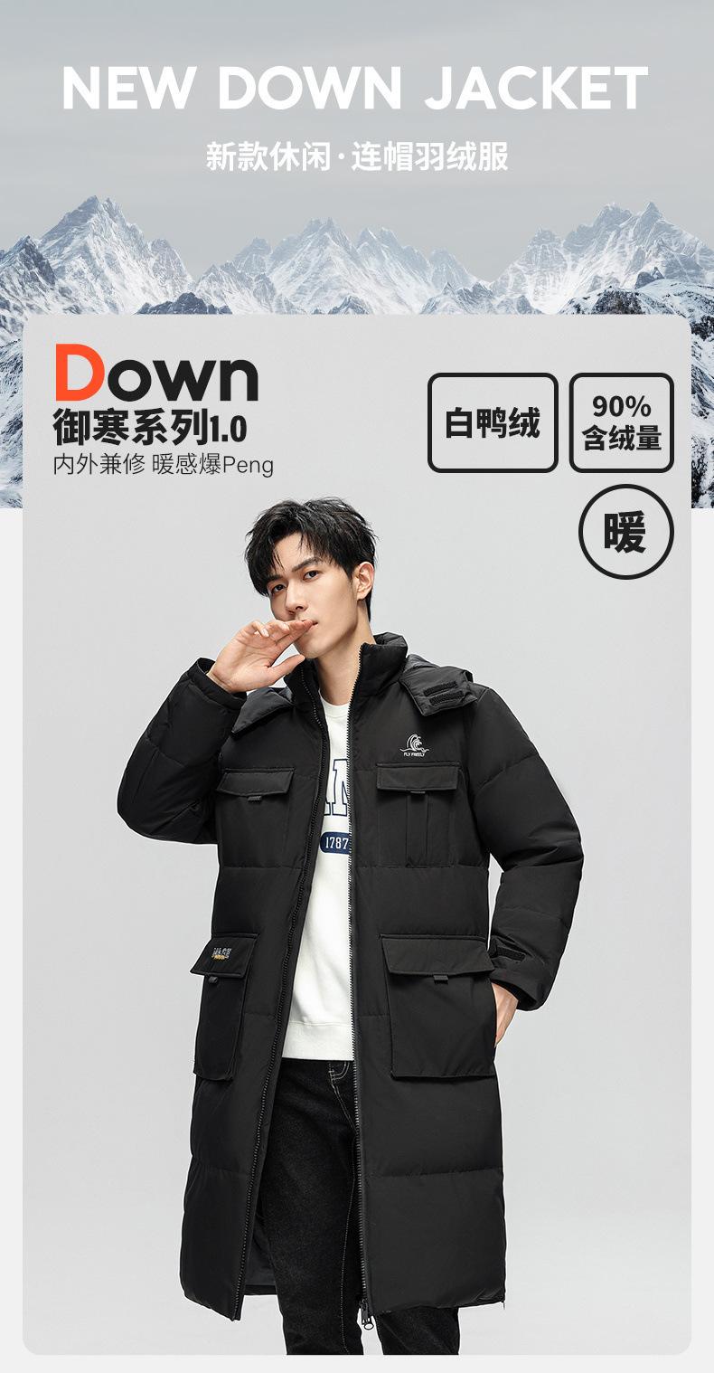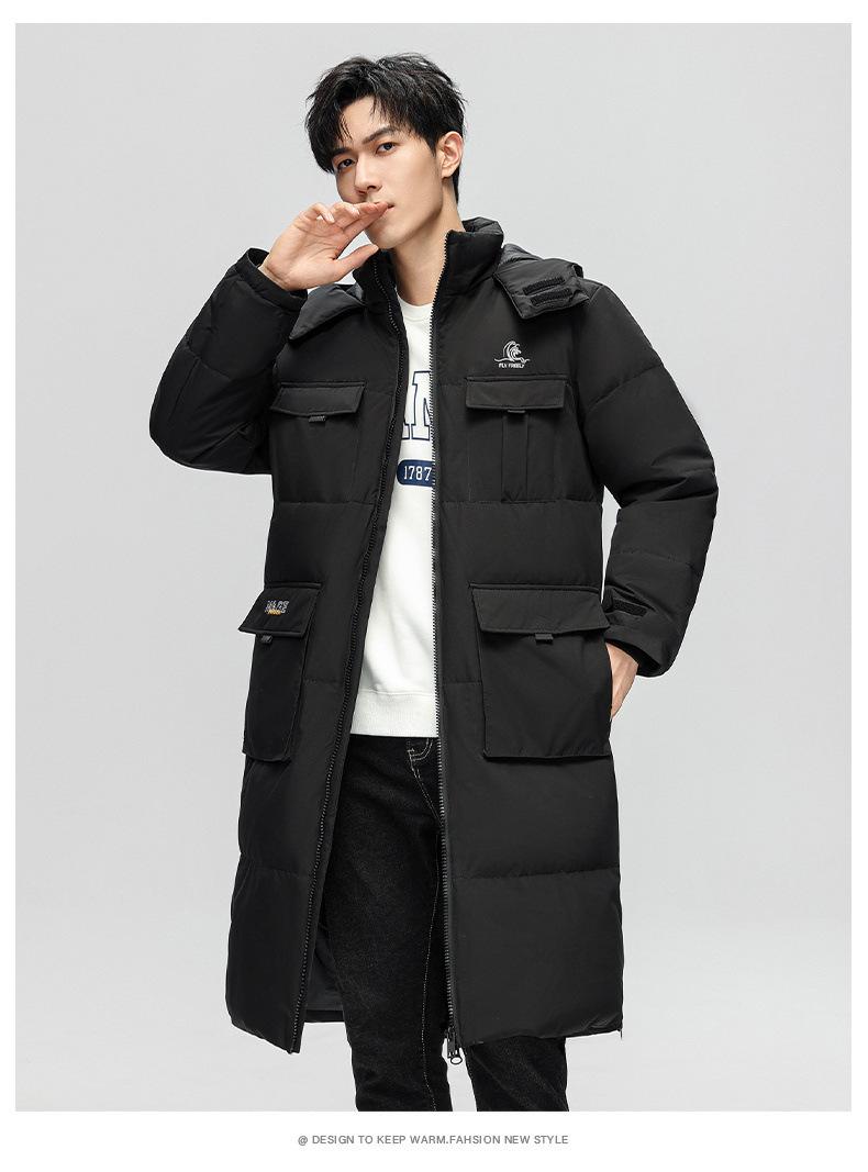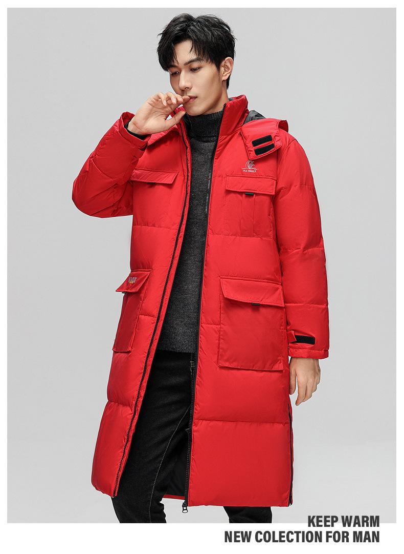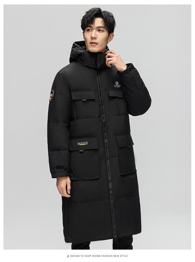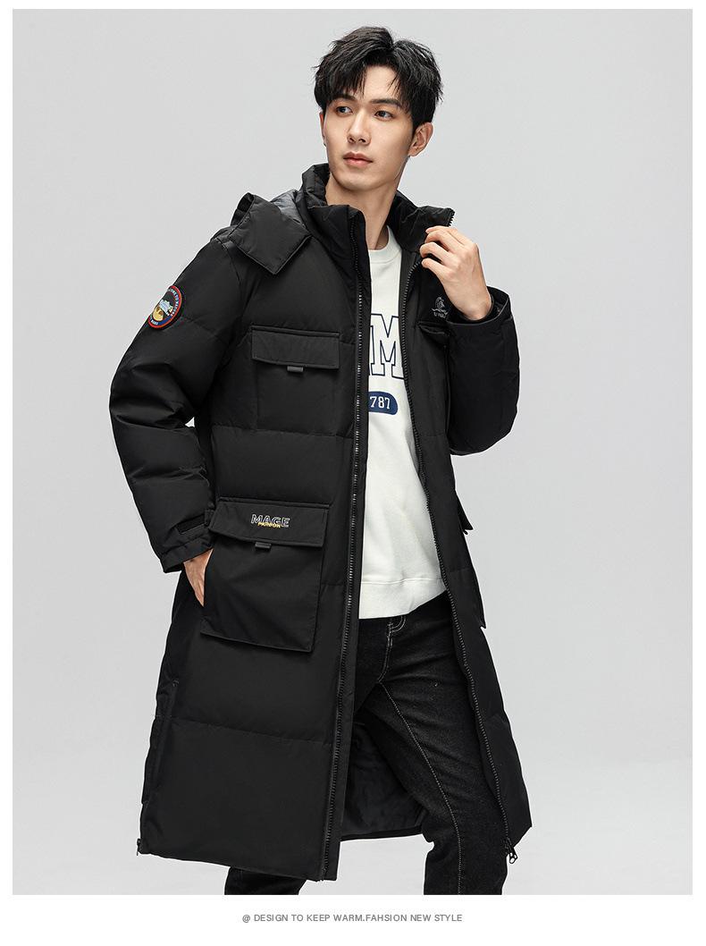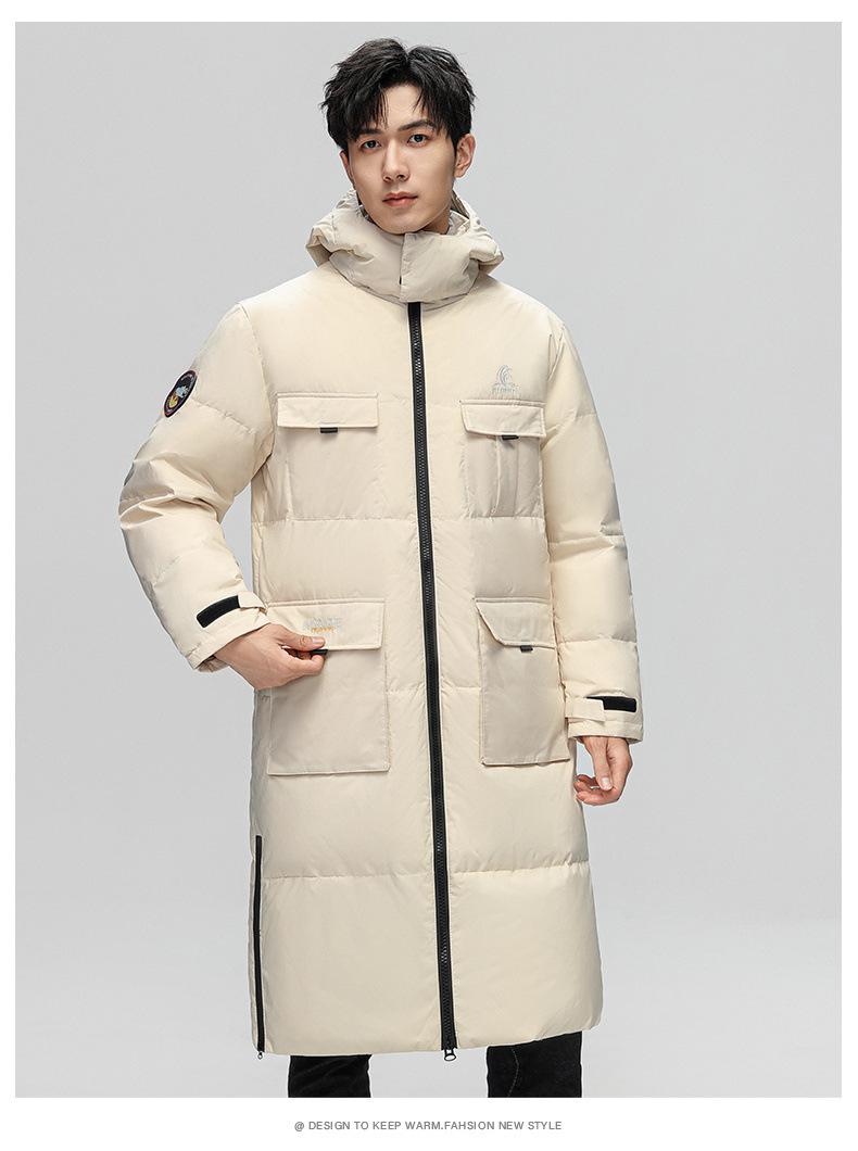 Jaqueta de penas masculina de comprimento médio e longo 90, jaqueta com capuz de penas de pato branco, moda de inverno, tamanho grande, casaco quente e grosso para casais, para homens