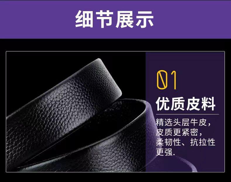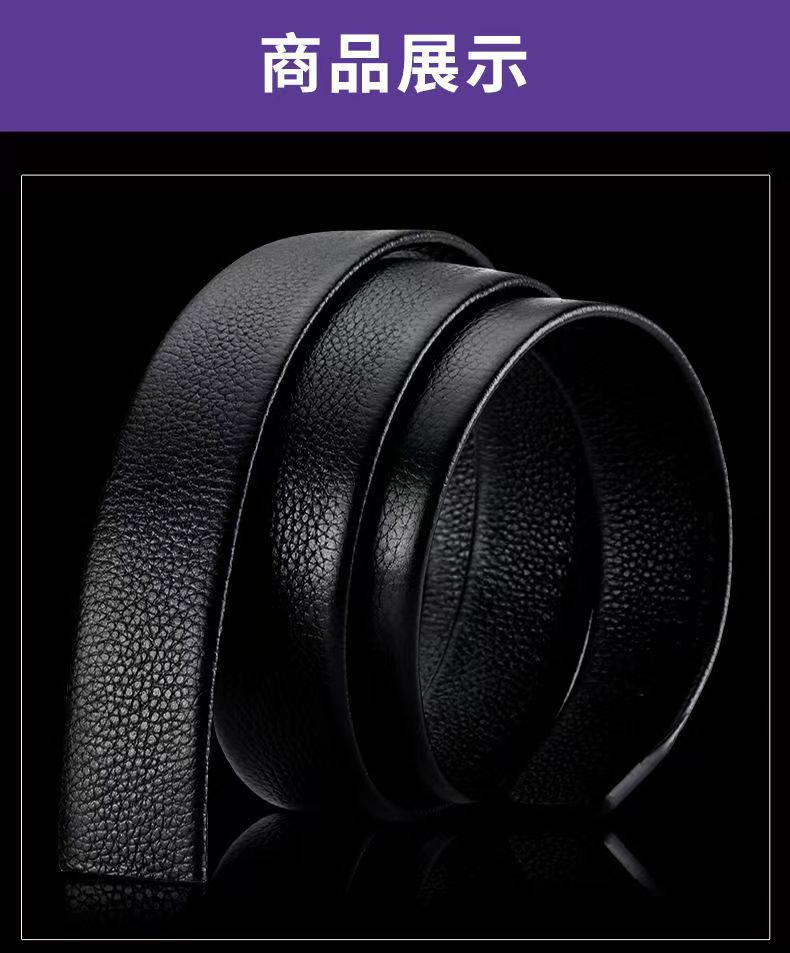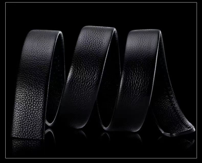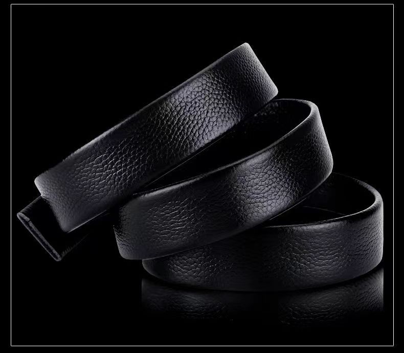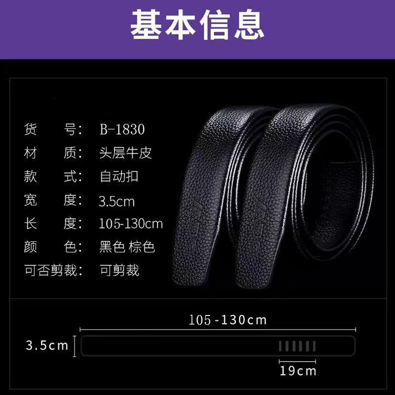 Cinto Masculino Couro Genuíno Camada Superior Couro de Vaca Fivela Automática Cinto Sem Cabeça Masculino Juvenil Couro de Vaca Padrão Lichia Cinto Sem Passador