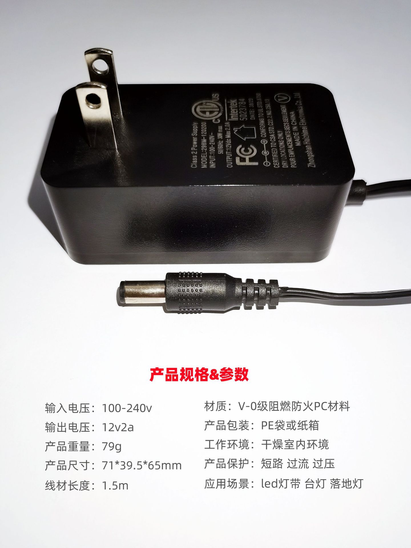 Adaptador de energia certificado etl padrão americano 12v2a, lâmpada de mesa 12v, luz led com adaptador de energia universal plug-in de parede