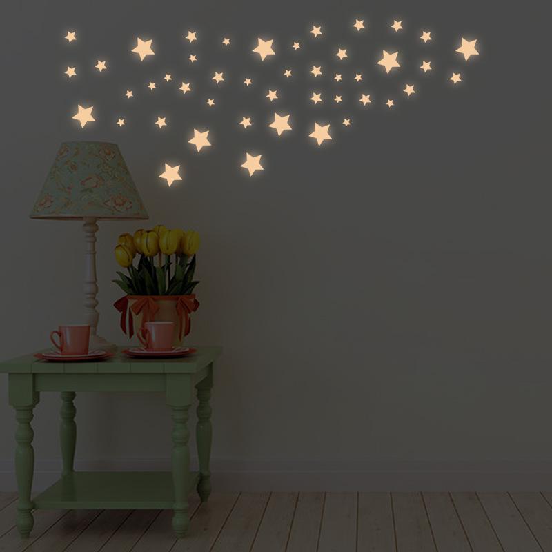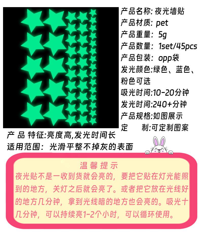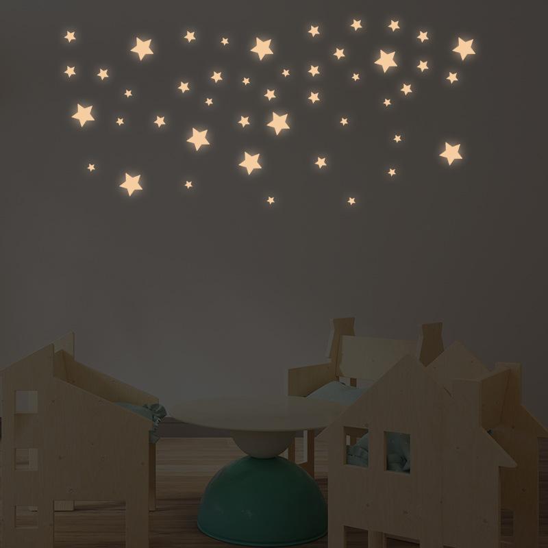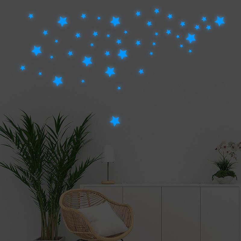 Comércio exterior novo luminoso estrela de cinco pontas quarto sala de estar decoração luminoso rosa adesivos de parede autoadesivos azul verde adesivos