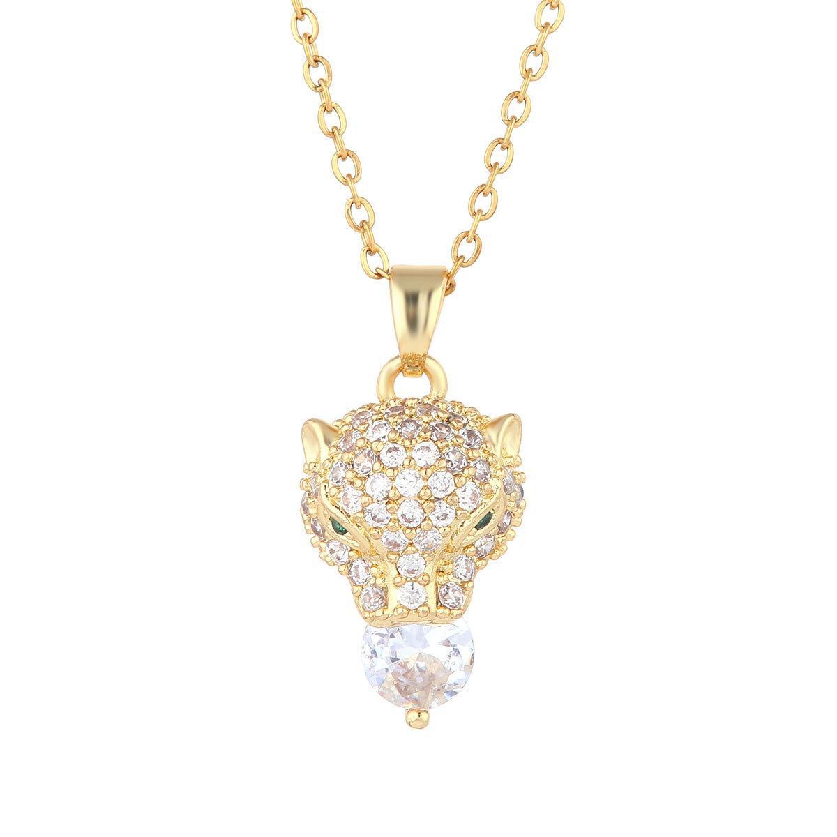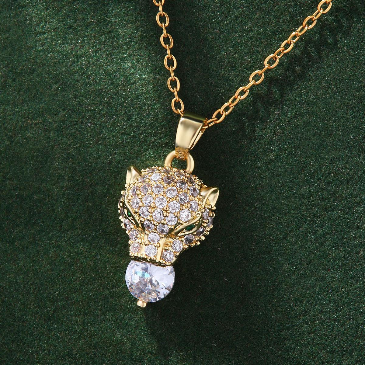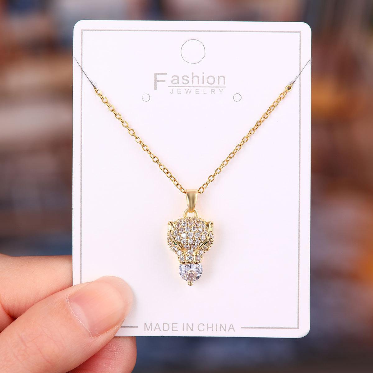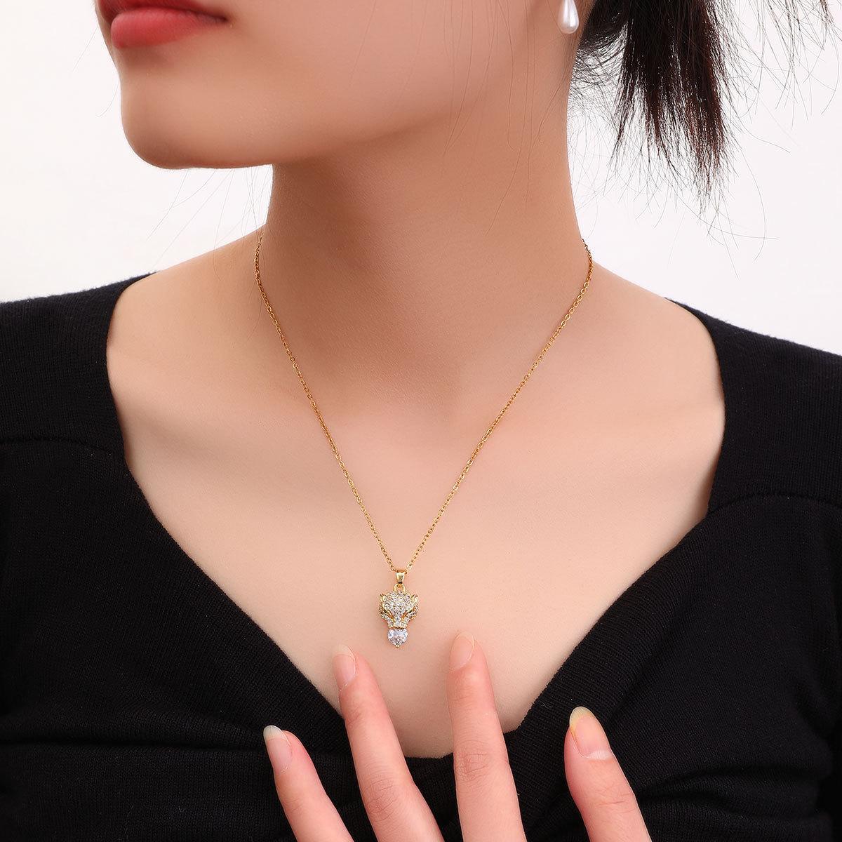 Colar de jóias de corrente de aço de titânio de luxo leve europeu e americano feminino All-match sem desbotamento Micro-incrustado Cabeça de leopardo Pingente Acessórios de corrente de clavícula