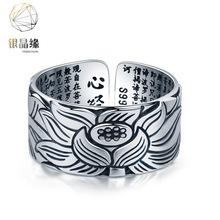 2018 Lotus Heart Sutra amplo anel de prata tailandês para homens dominador retro velho aberto personalidade anel de dedo indicador all-match
