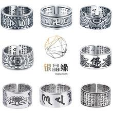 2018 novo anel de prata tailandesa retrô coração sutra anel de seis caracteres mantra geométrico acessórios femininos envio em massa