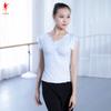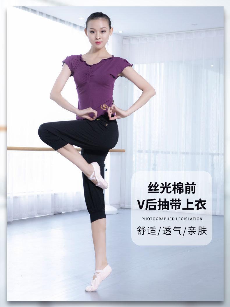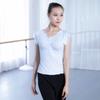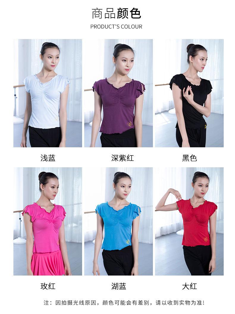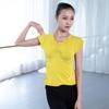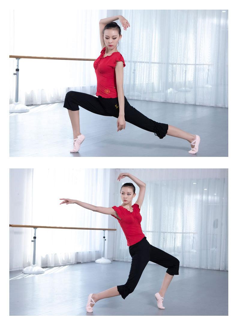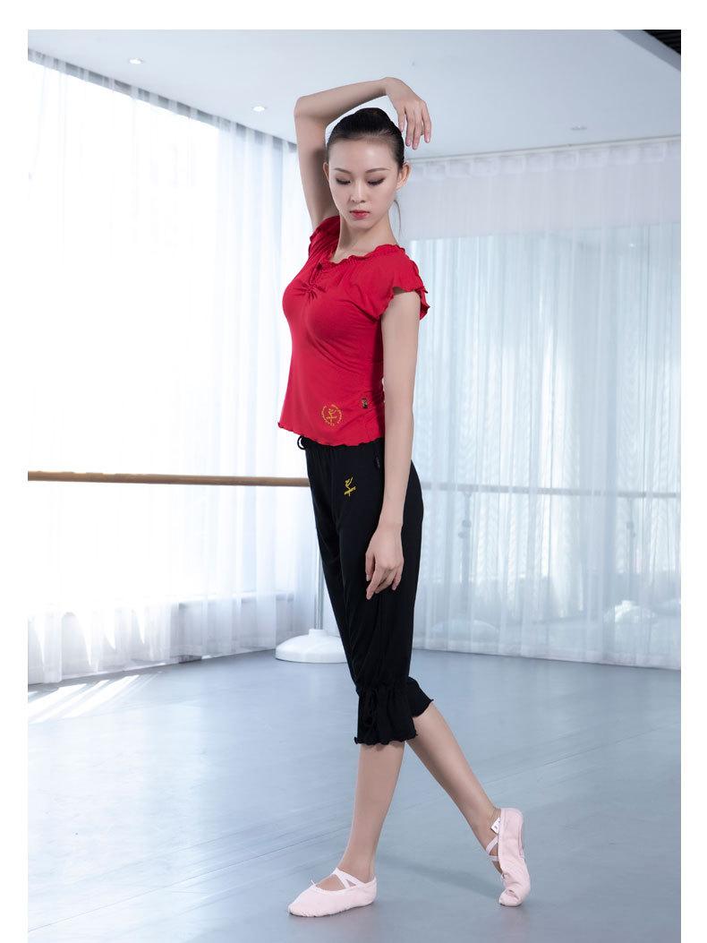 Sapatos de dança vermelhos com decote em V, moda manga curta, top feminino, roupa de dança, roupa de prática de dança moderna 35201