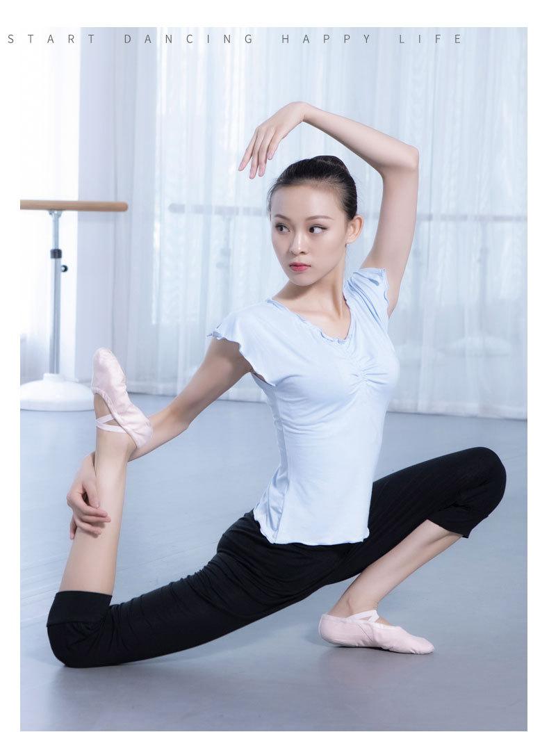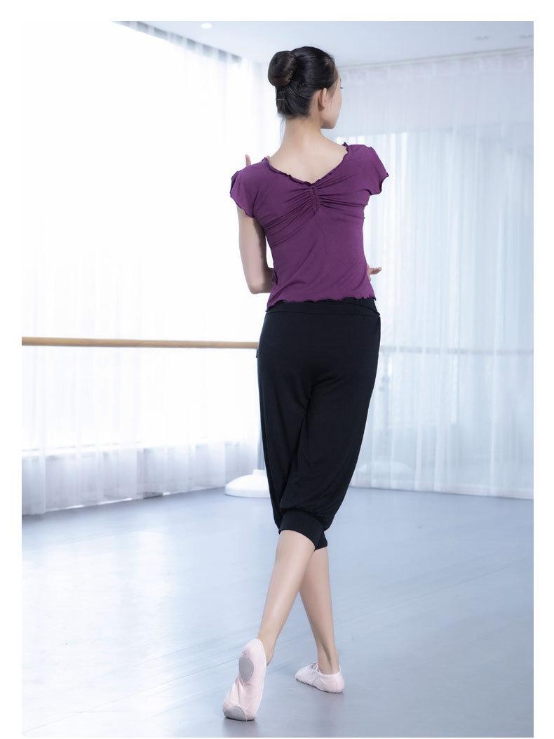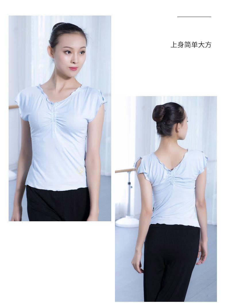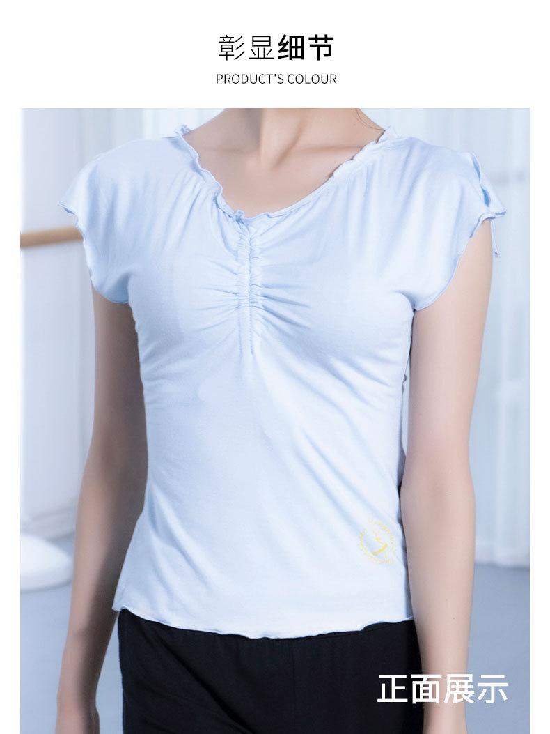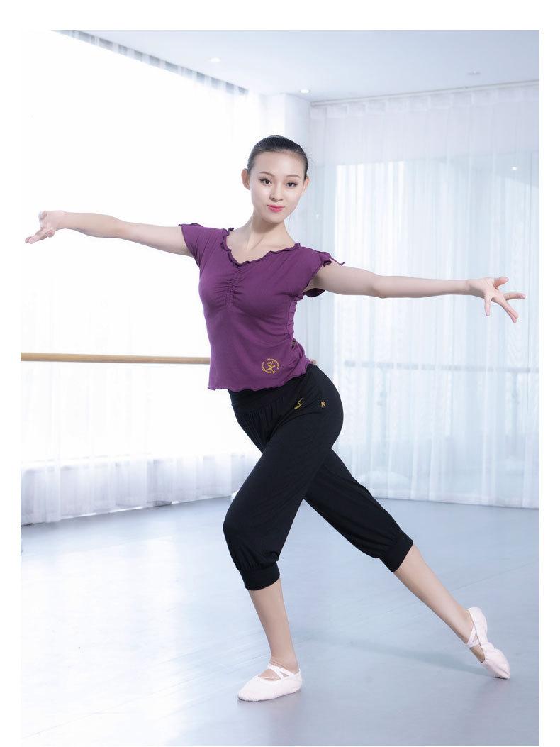 Sapatos de dança vermelhos com decote em V, moda manga curta, top feminino, roupa de dança, roupa de prática de dança moderna 35201