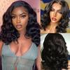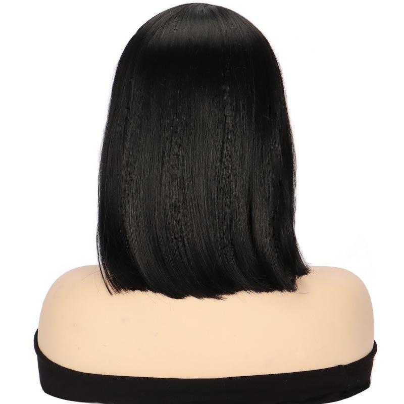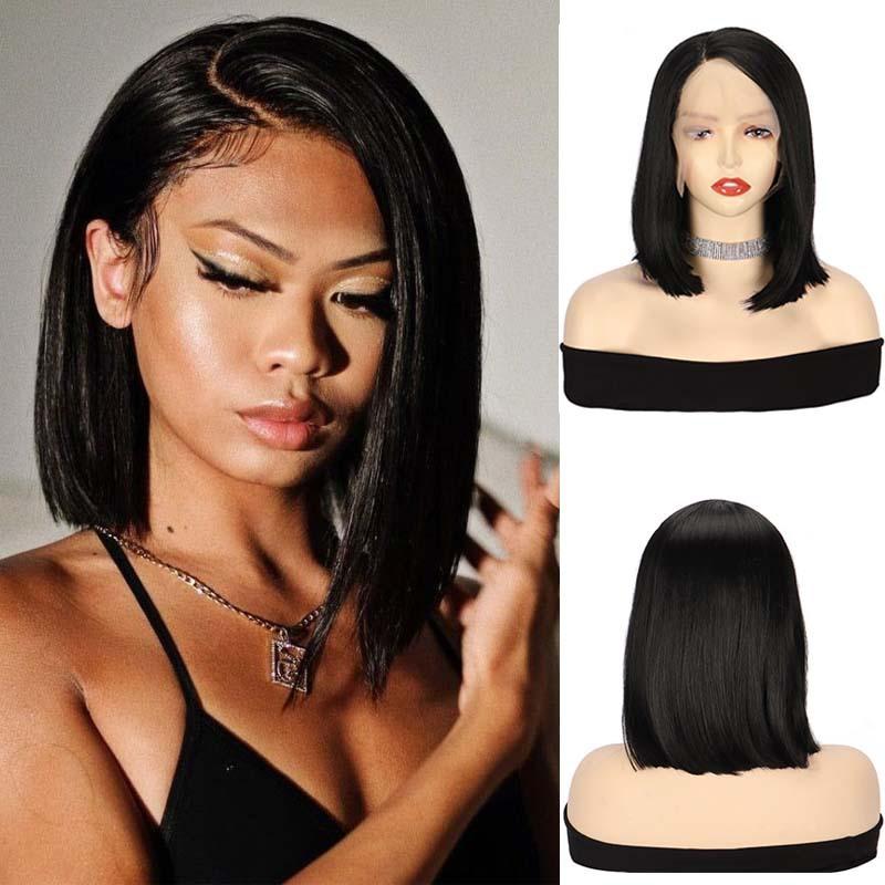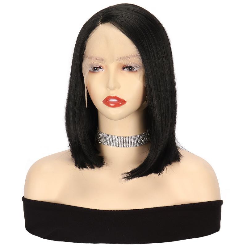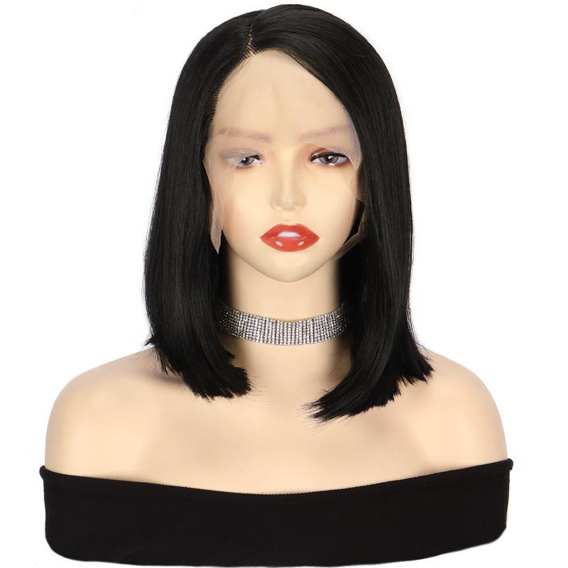 Peruca de renda frontal parcial transfronteiriça Europa e Estados Unidos, feminina, Bob, cabelo curto preto, fibra química, acessório de cabeça, peruca com parte lateral