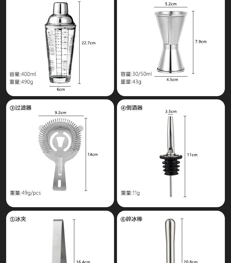 Coqueteleira de Aço Inoxidável 304 Coqueteleira de Vidro Coqueteleira Manual Conjunto de Ferramentas de Bartender para Bar de Coquetéis Coqueteleira de Entrada