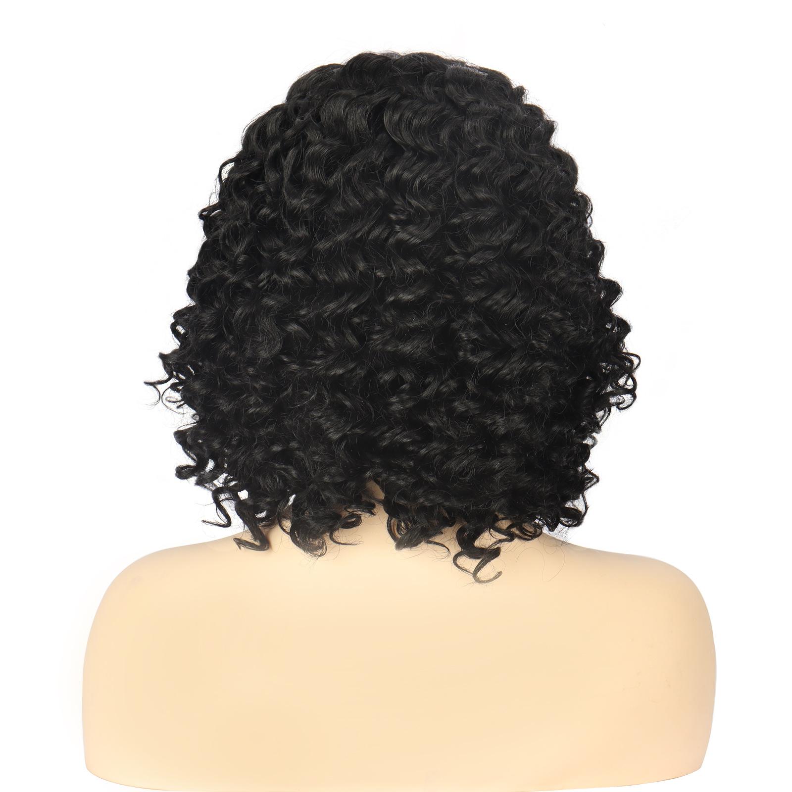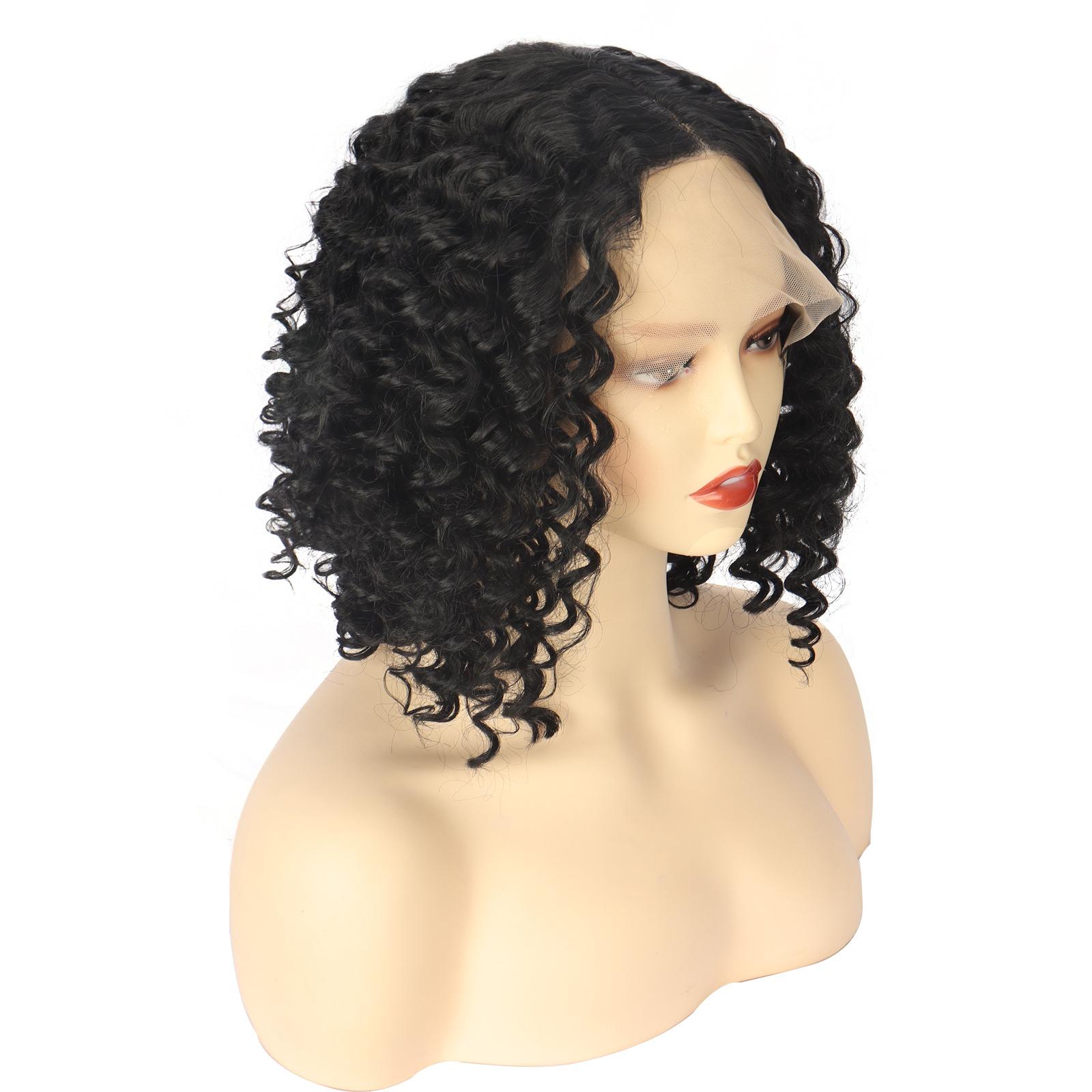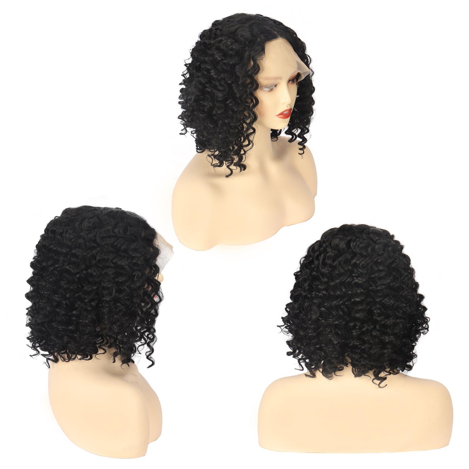 Peruca de renda frontal europeia e americana transfronteiriça feminina, peruca curta africana, rolo pequeno, cabelo curto cacheado, fibra química, headset, perucas curtas