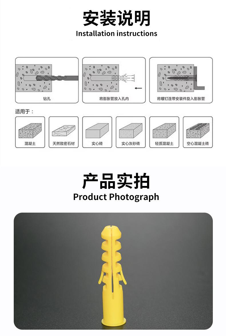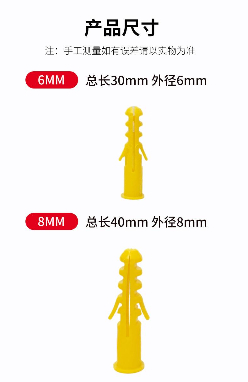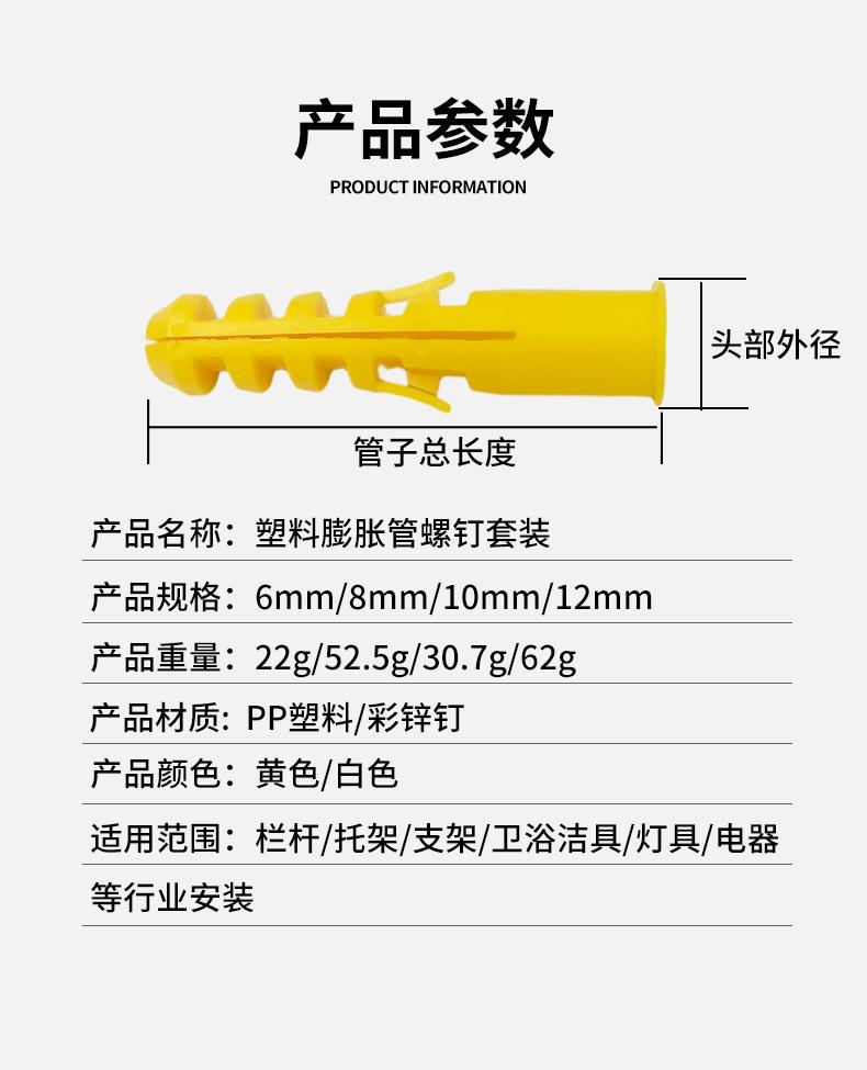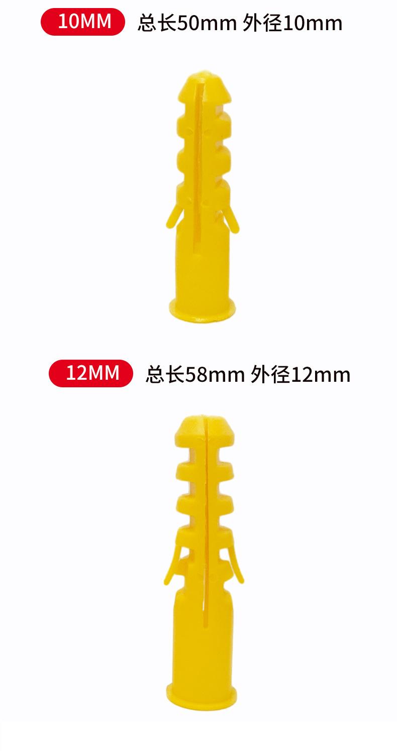 Tubo de expansão de plástico de parafuso de expansão de corvina amarelo pequeno com parafuso auto-roscante 6mm8mm10mm plugue de borracha Plugue de parafuso