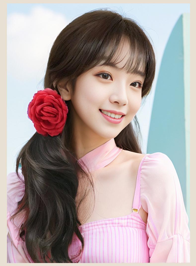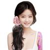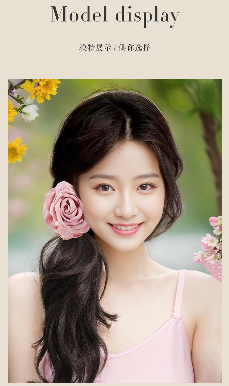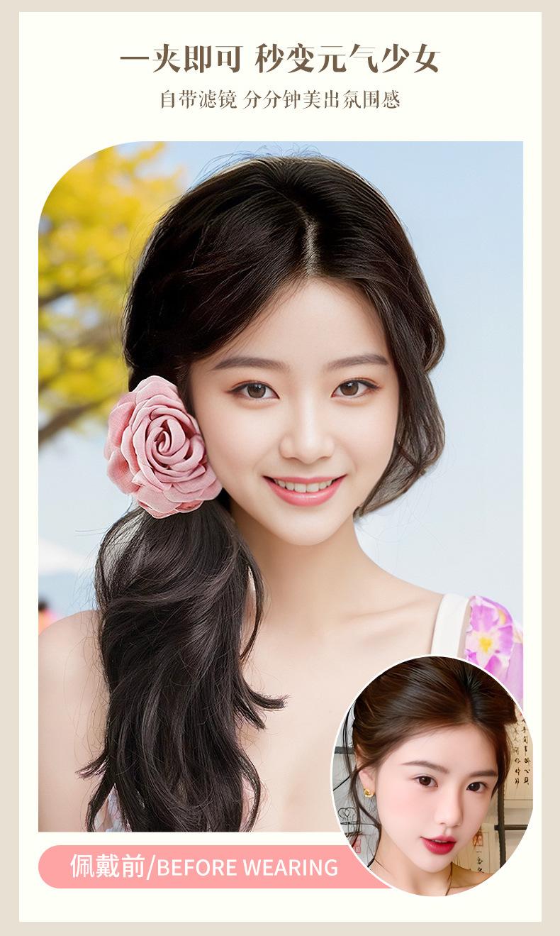 Braçadeira Nova Peruca Chinesa Tricolor Rosa Rabo de Cavalo Nível Onda Desgaste Lateral Doce Cabelo Encaracolado Flor Rabo de Cavalo