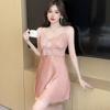 2024 Verão Novo Pijama Sexy Feminino Cetim Gelo Seda Estilingue Camisola com Almofada no Peito High-end Sense Roupas Femininas para Casa