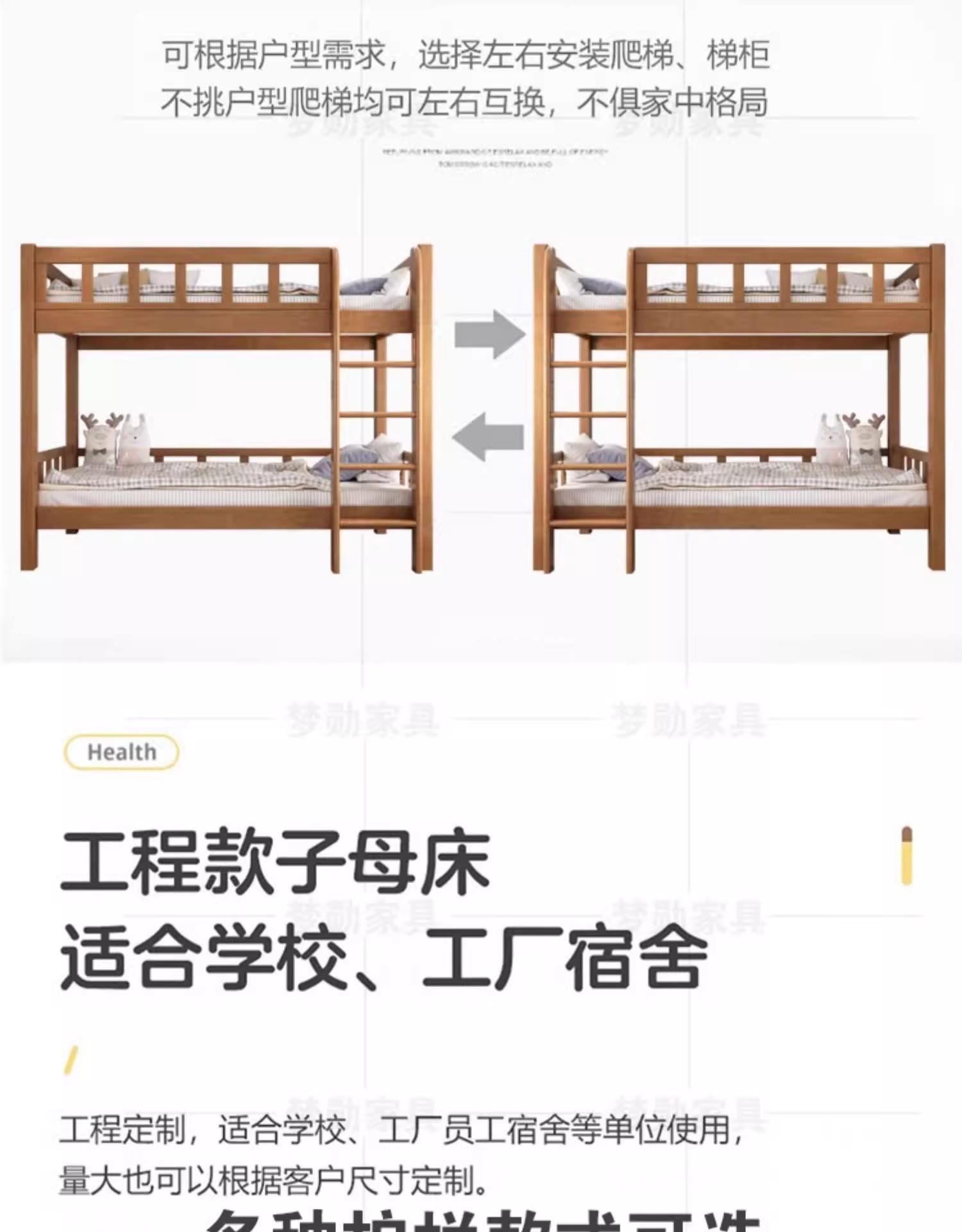 Beliche de Madeira Maciça Espessa para Adultos, Beliche, Beliche, Cama Alta e Baixa Infantil, Beliche Multifuncional