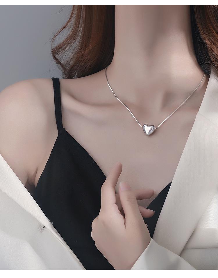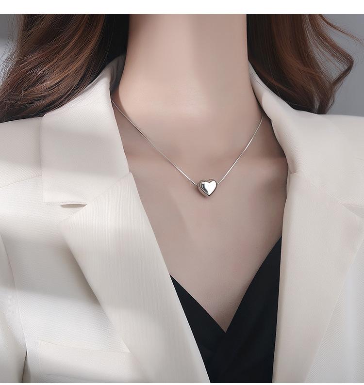 Colar de prata S925 estilo coreano, doce, amor, feminino, retrô, elegante, pêssego, coração, clavícula, corrente, joia criativa da moda