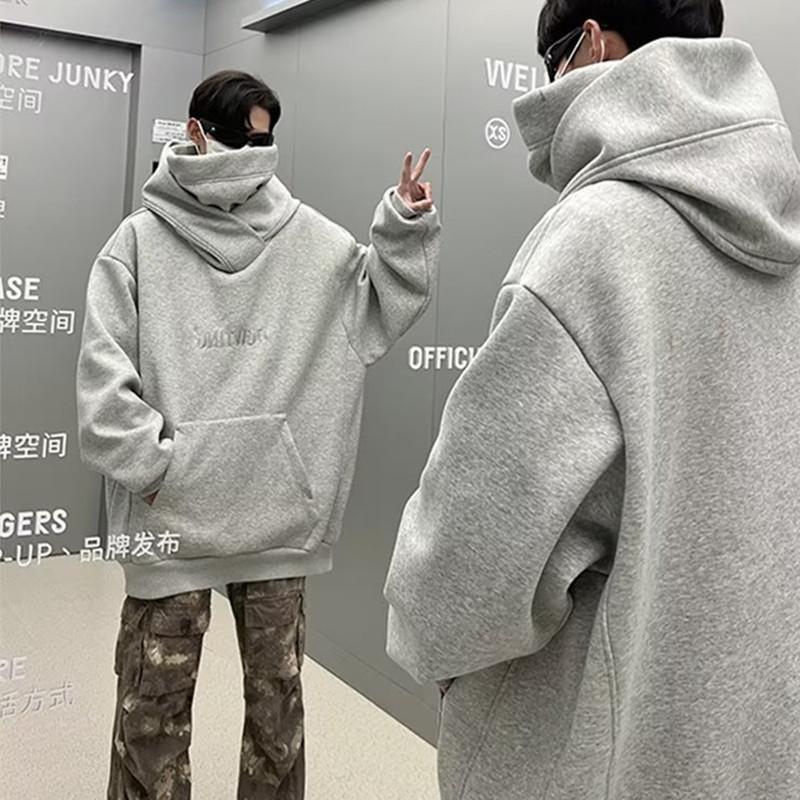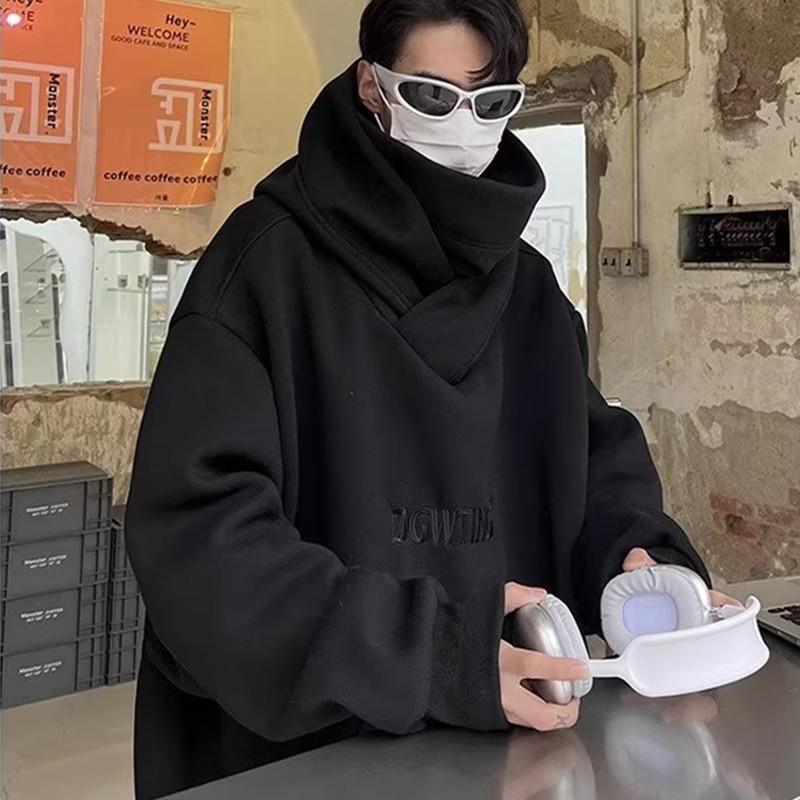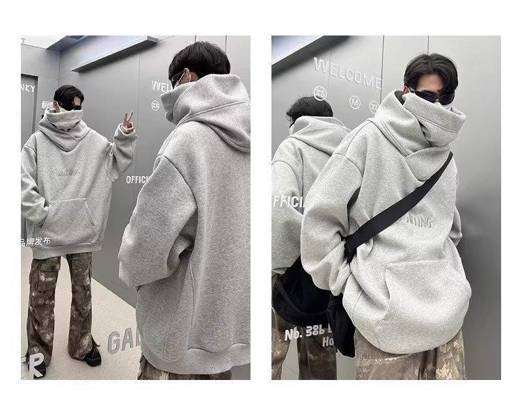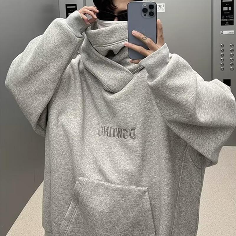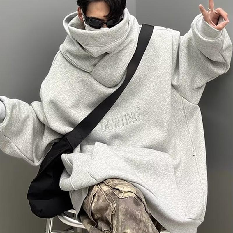 Moletom de algodão chinês Outono e inverno masculino Novo estilo americano gola alta jaqueta com capuz solto preguiçoso moda marca tamanho grande outono top