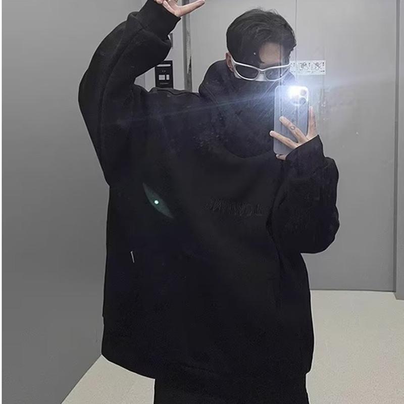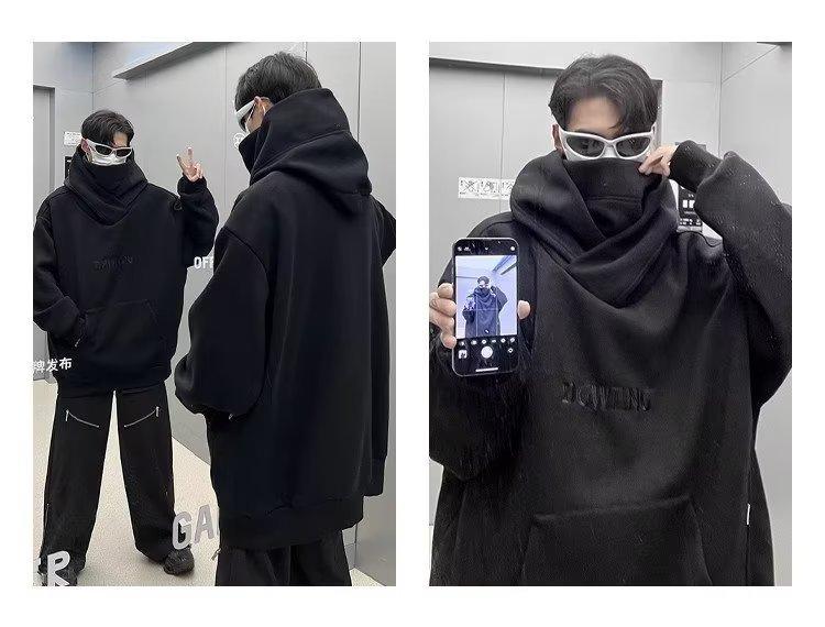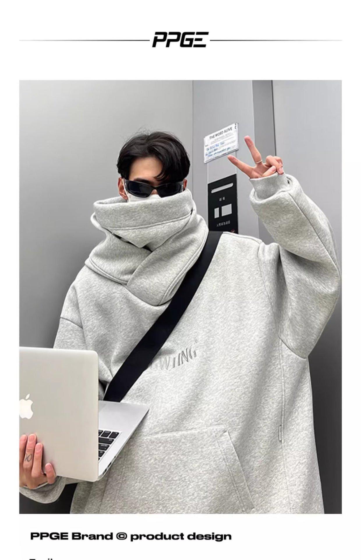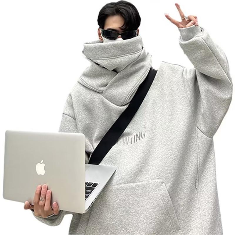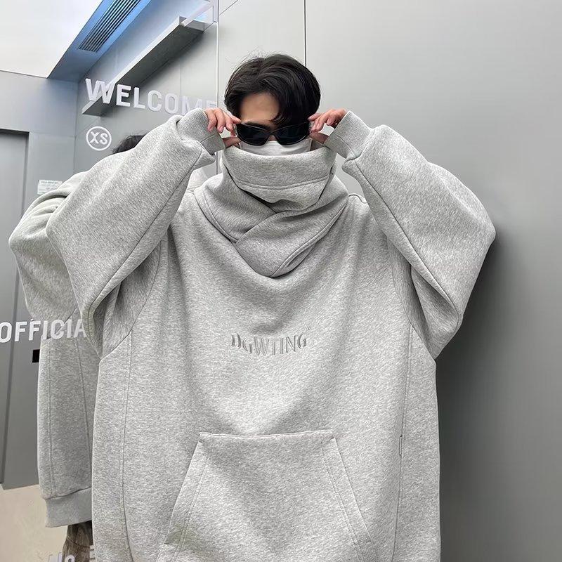 Moletom de algodão chinês Outono e inverno masculino Novo estilo americano gola alta jaqueta com capuz solto preguiçoso moda marca tamanho grande outono top