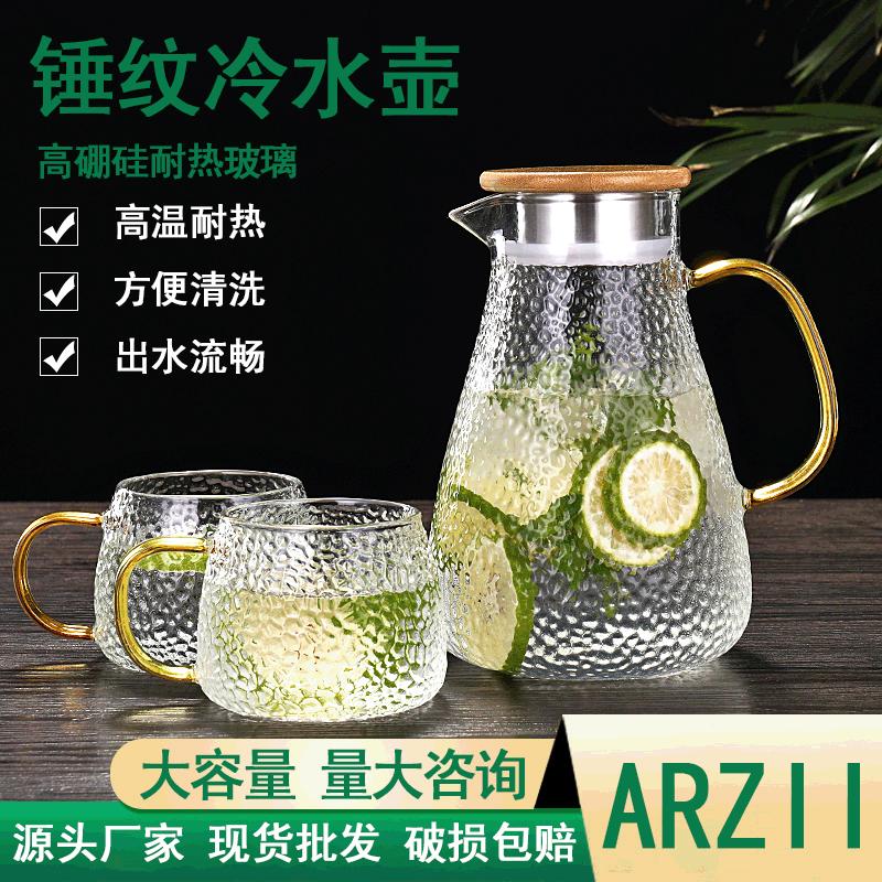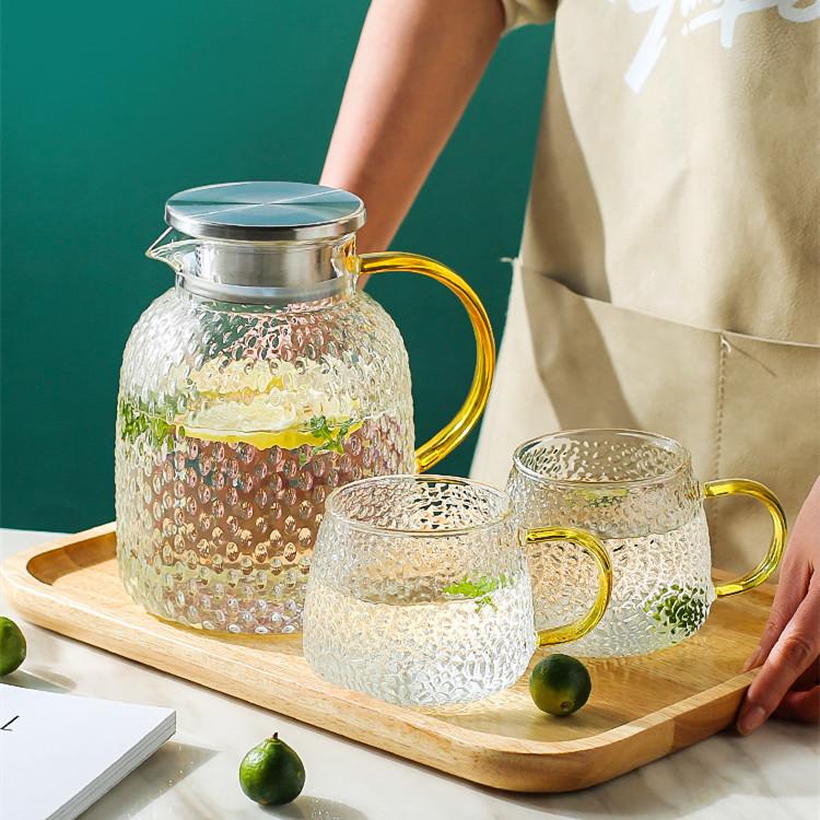 | Conjunto de chaleira de água fria de vidro com padrão de martelo doméstico, conjunto de xícara de água fria, chaleira de vidro resistente ao calor, pote de suco de alta temperatura¥ 6,5Compre agora |