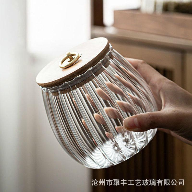 | Atacado jarra de armazenamento de vidro listrado latas de chá potes selados doméstico grande capacidade anel de cobre capa de bambu utensílios de cozinha¥11,9Compre agora |