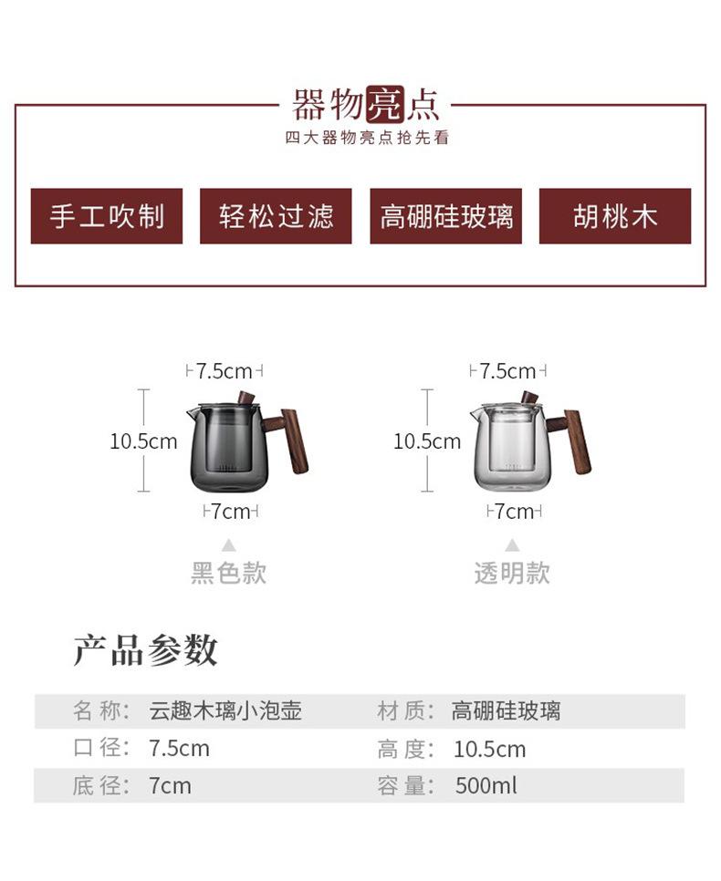| Bule de chá de vidro com alça de madeira estilo japonês, separação de água, vidro de borosilicato alto, resistente ao calor, conjunto de chá de escritório para casa¥ 30Compre agora |