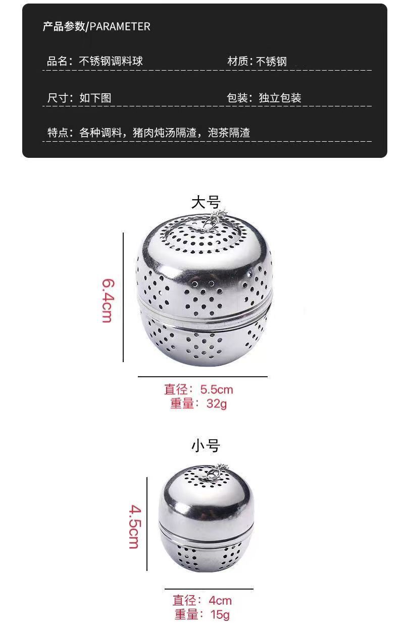 Aço inoxidável tempero bola filtro tempero bola vazamento chá sopa de chá marinado comida cozinha bola de chá Weibao ninho gaiola