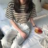 Atacado 2023 Verão novo listrado manga curta T-shirt feminino coreano camisa base Estudante Feminino versátil top roupas femininas