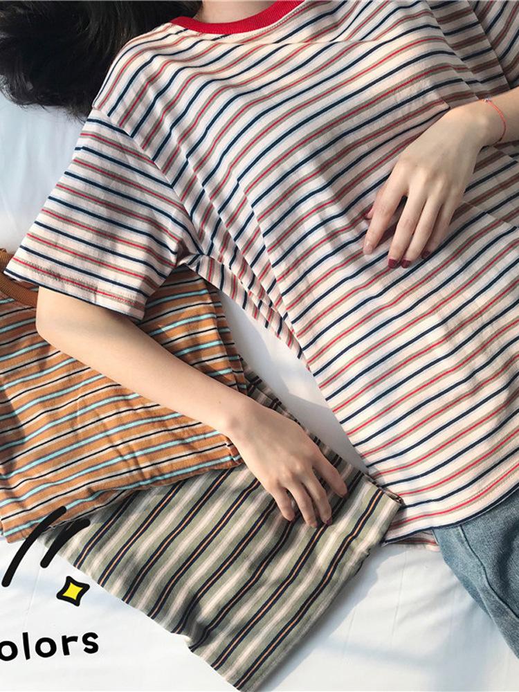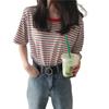 Compre Atacado 2023 Verão novo listrado manga curta T-shirt feminino coreano camisa base Estudante Feminino versátil top roupas femininas no atacado no Joom.pro