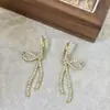Brincos de Laço Totalmente Cravejados em Diamante Estilo Francês para Mulheres, Design de Nicho, Luxo Leve, Sensação de Alto Padrão, Efeito Emagrecimento Facial, Brincos de Zircônia Microincrustada