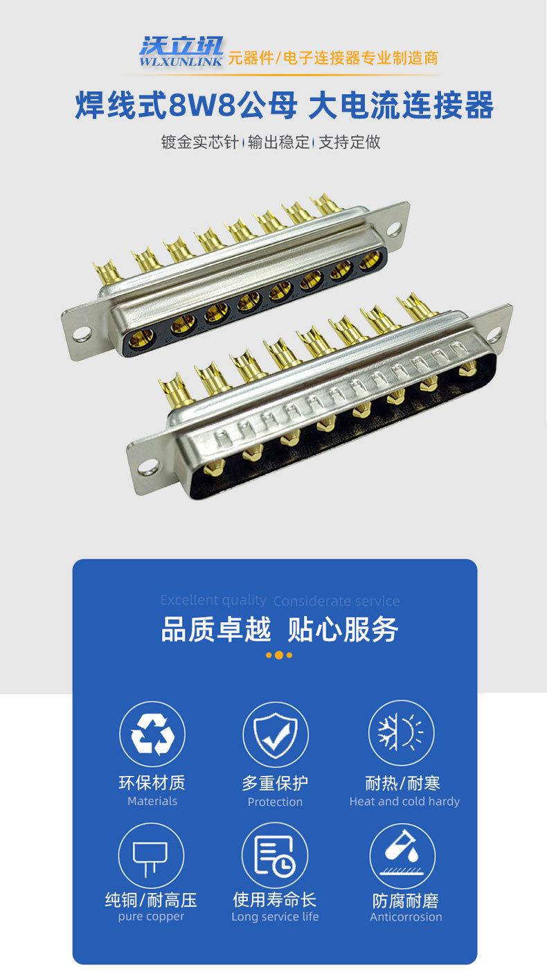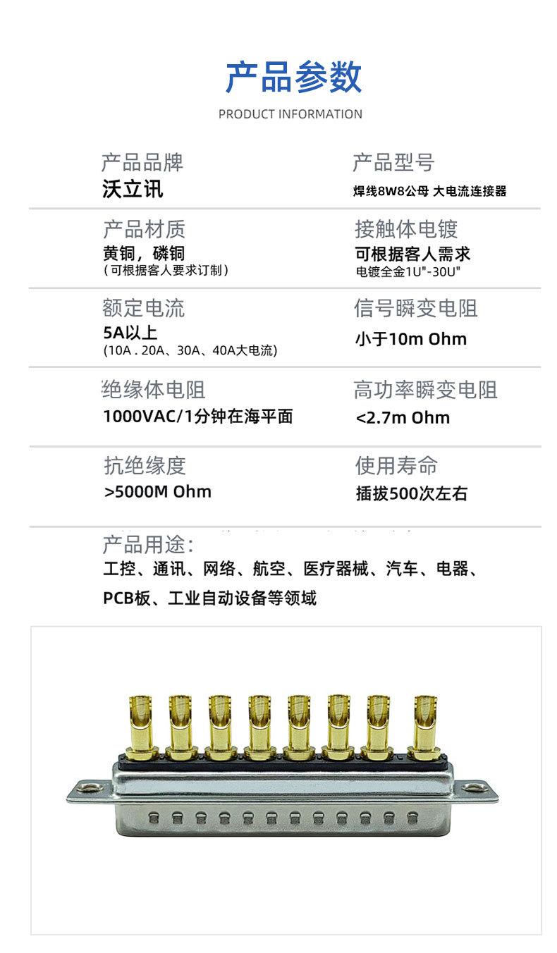 8W8 conector banhado a ouro agulha de alta corrente macho fêmea D-SUB 8-core chicote de fiação plug terminal de fiação
