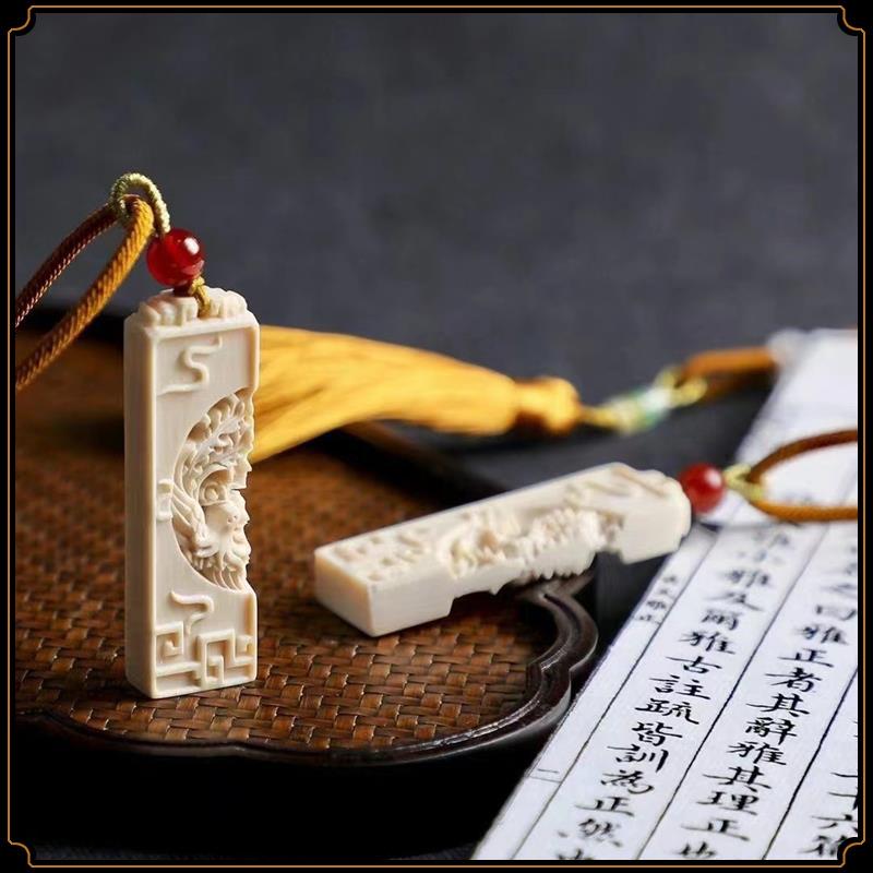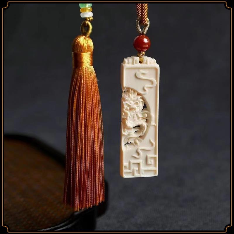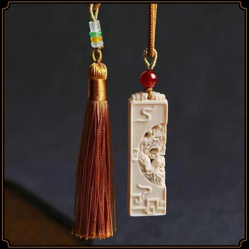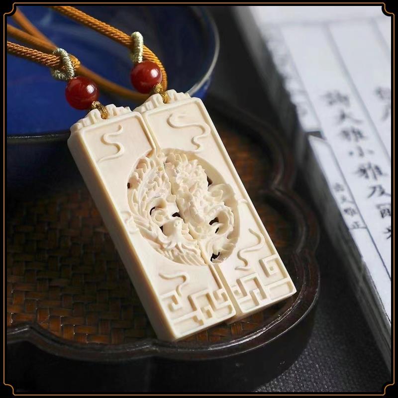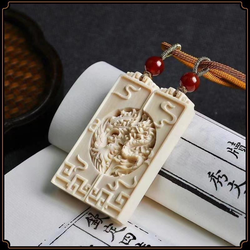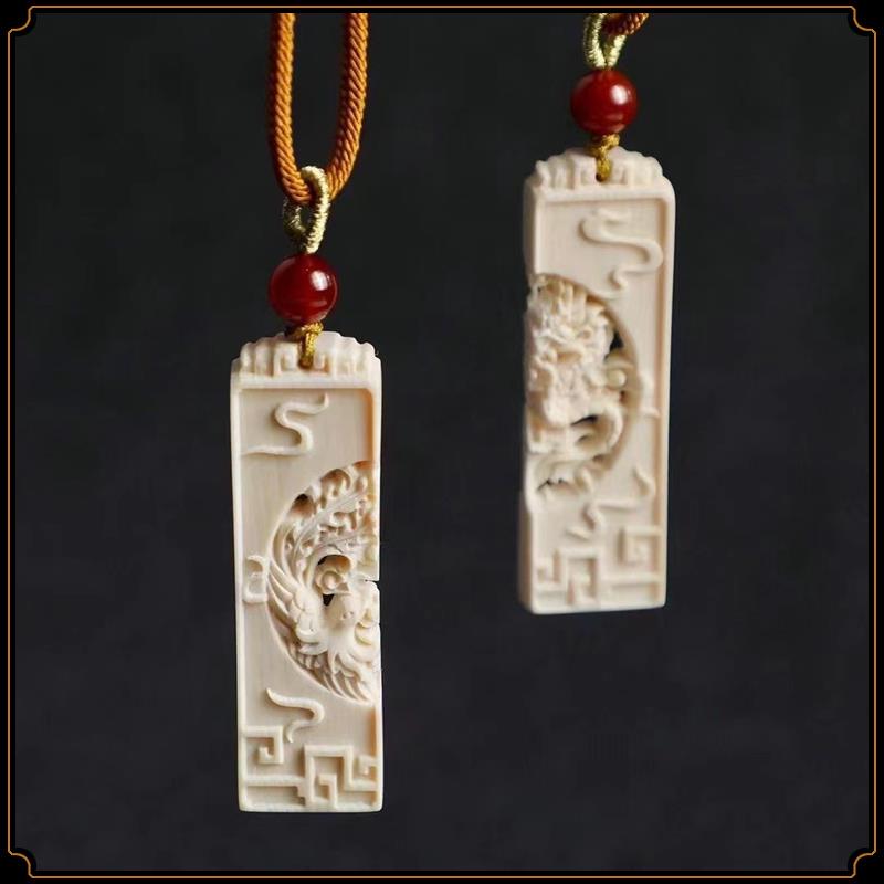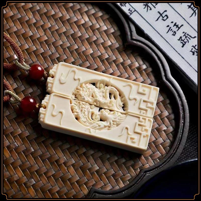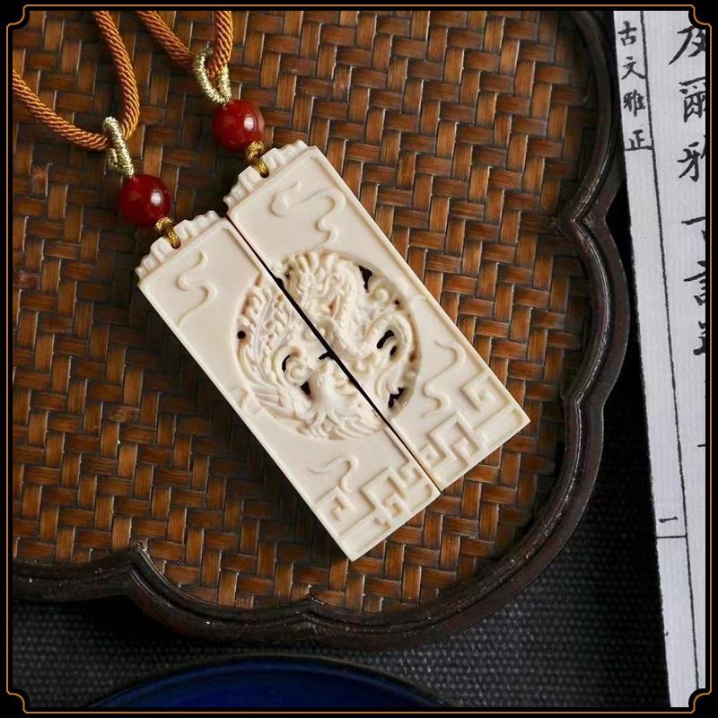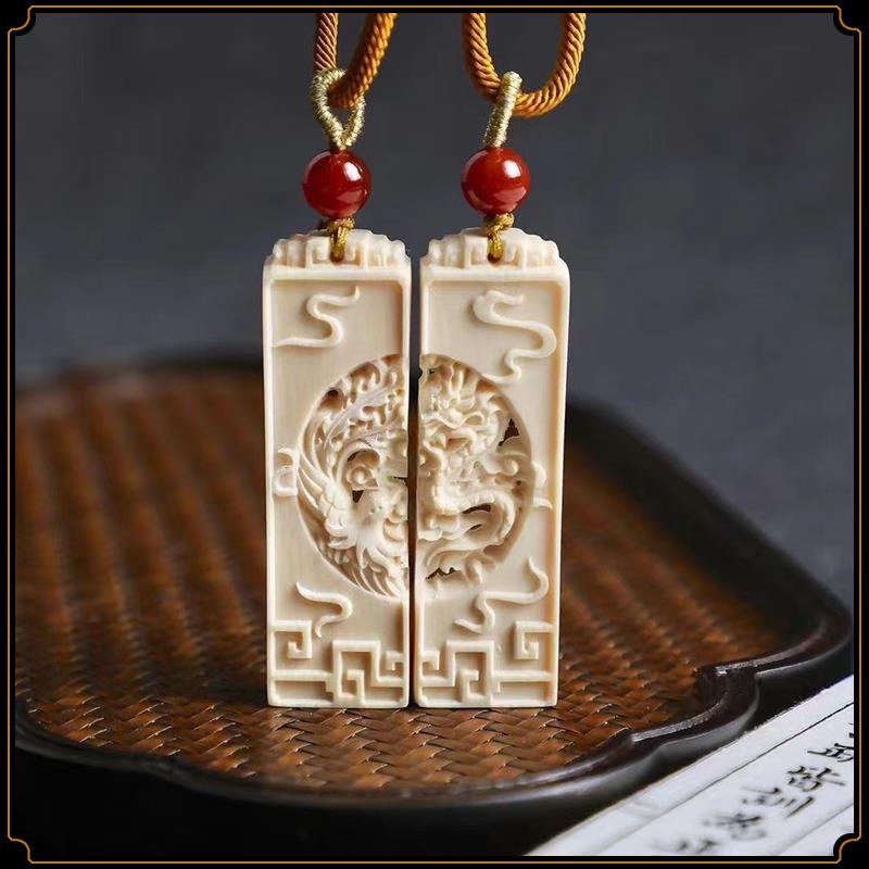 Pingente de dragão e fênix de marfim mamute, par de pingentes de marca sem importância, pingente de estrela e lua, acessórios de jogo Wen, pingente de casal para homens e mulheres