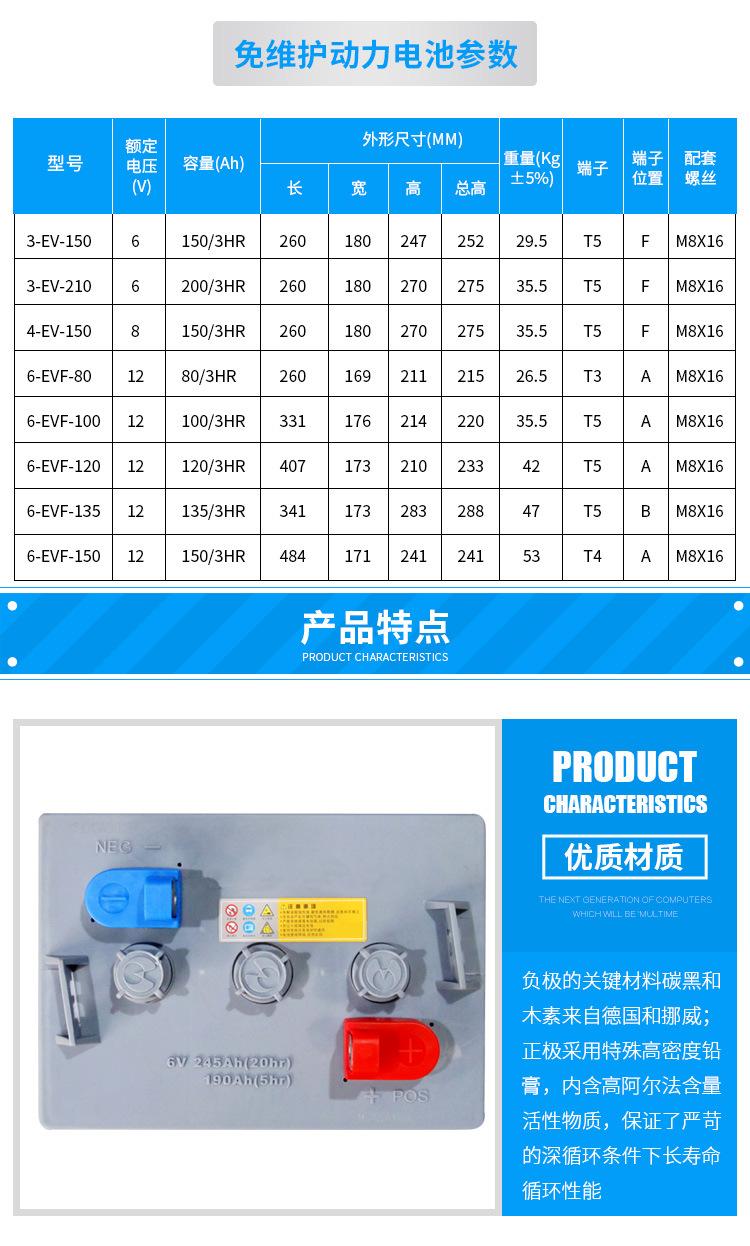 Bateria de energia livre de manutenção Bellons 3-EV-200T bateria de chumbo-ácido regulada por válvula 6V200A