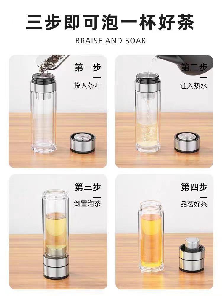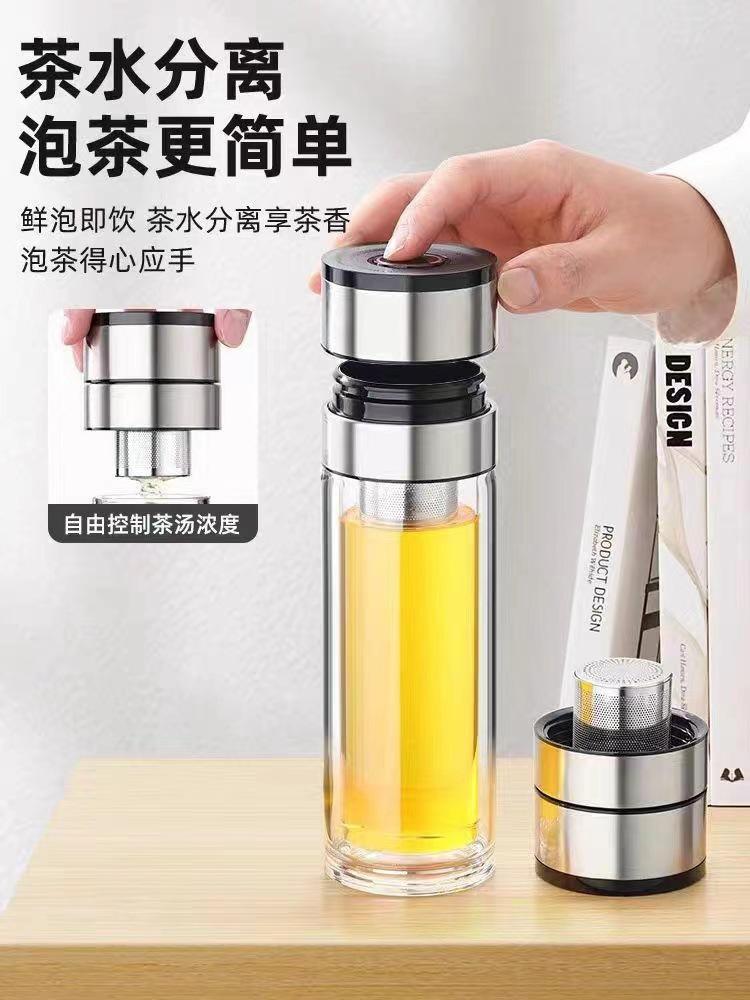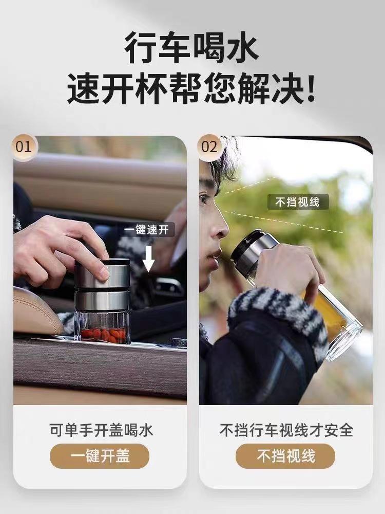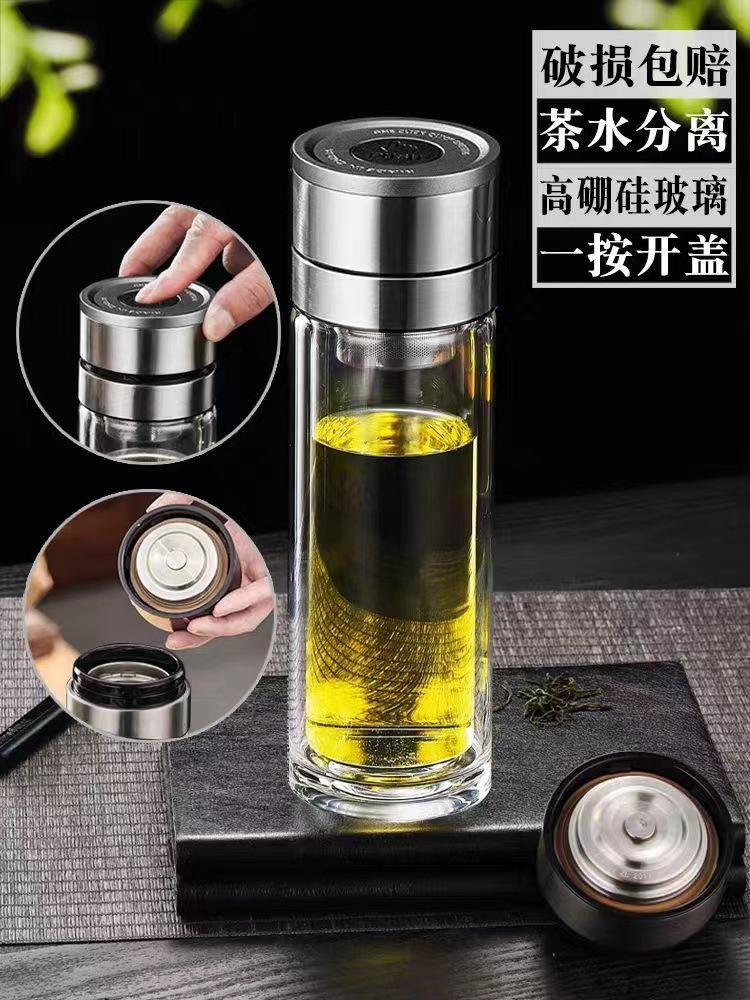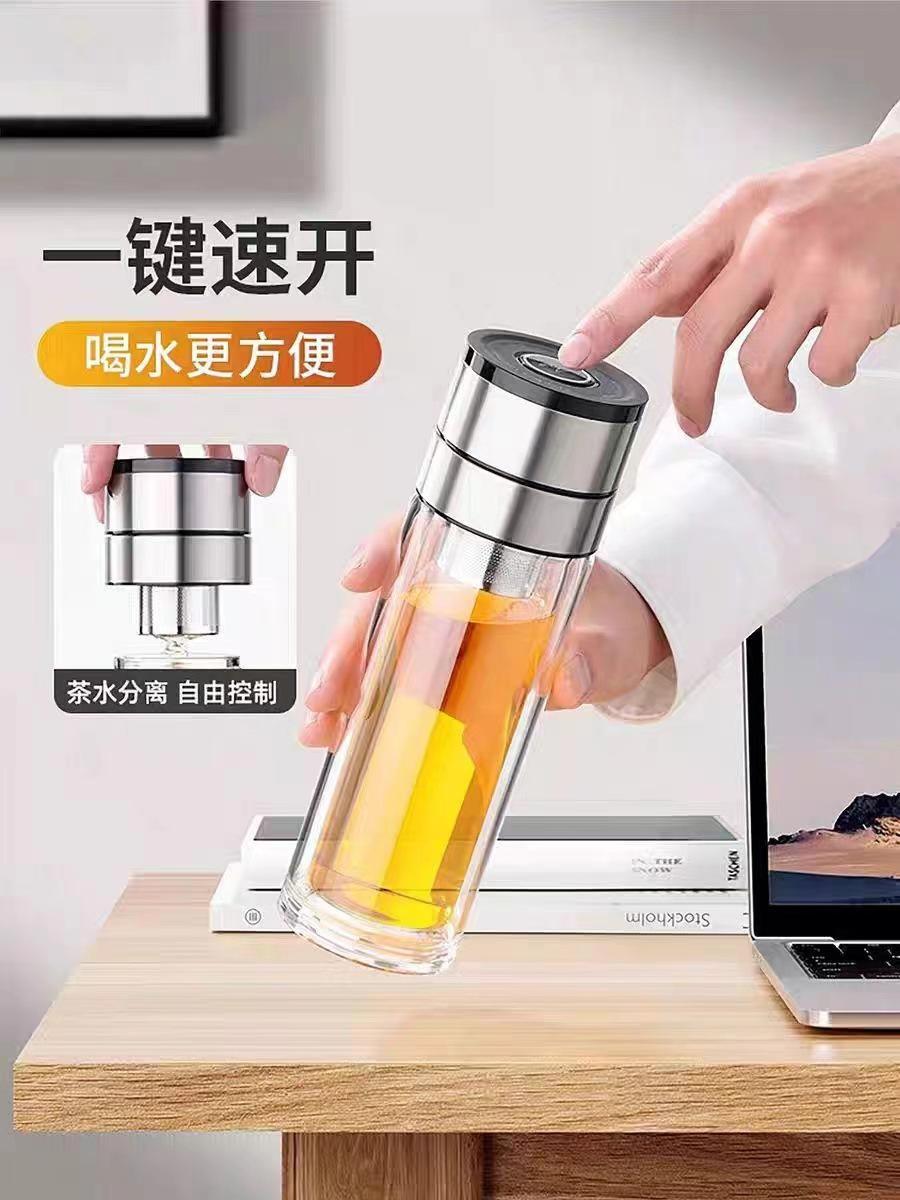 Atacado de vidro de separação de chá masculino copo de abertura rápida carro dupla camada de alta temperatura portátil xícara de chá imprimível logotipo