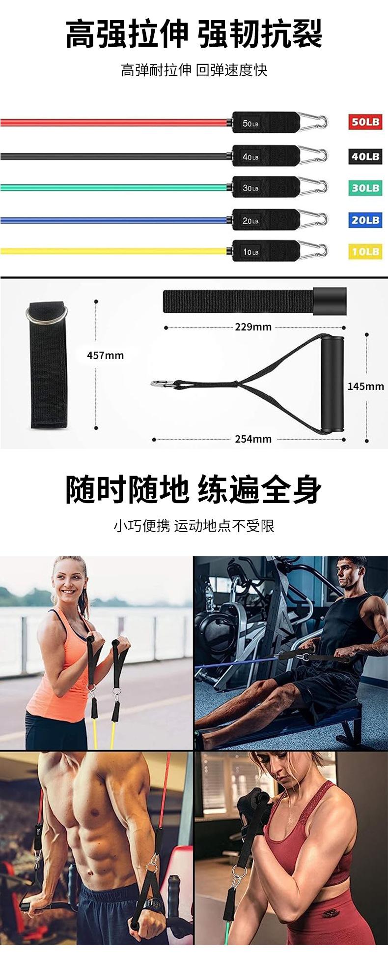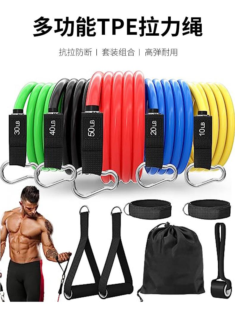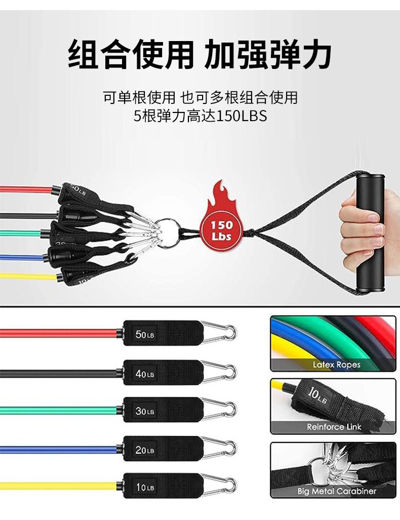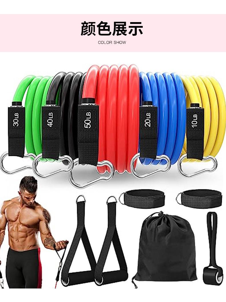 Corda de tensão de treinamento abrangente de 11 peças transfronteiriça, 150 libras, cinto de tensão expansor de peito esportivo e fitness