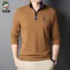 2023 novo algodão mercerizado camiseta masculina de manga comprida com zíper gola polo camiseta de meia-idade pai outono