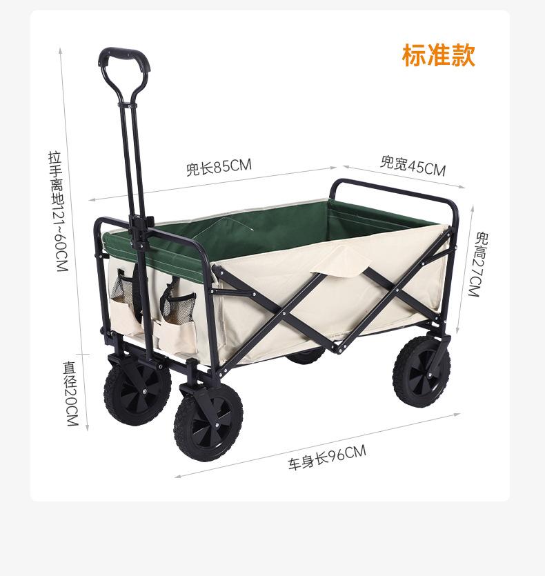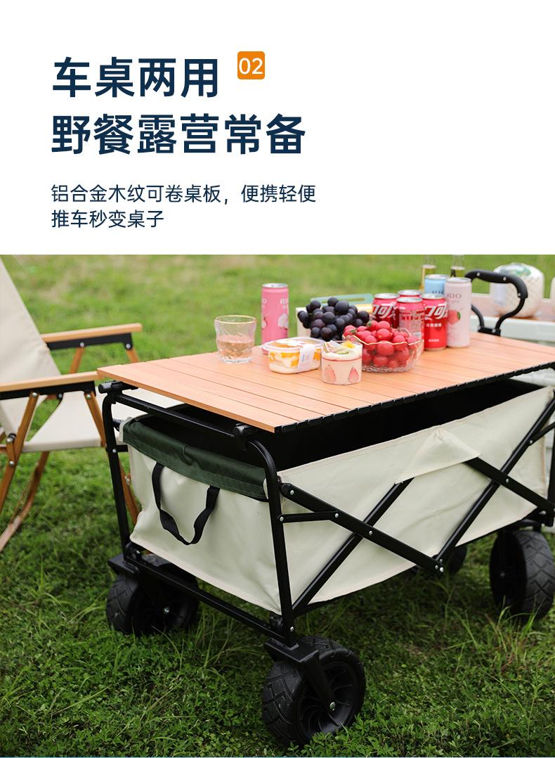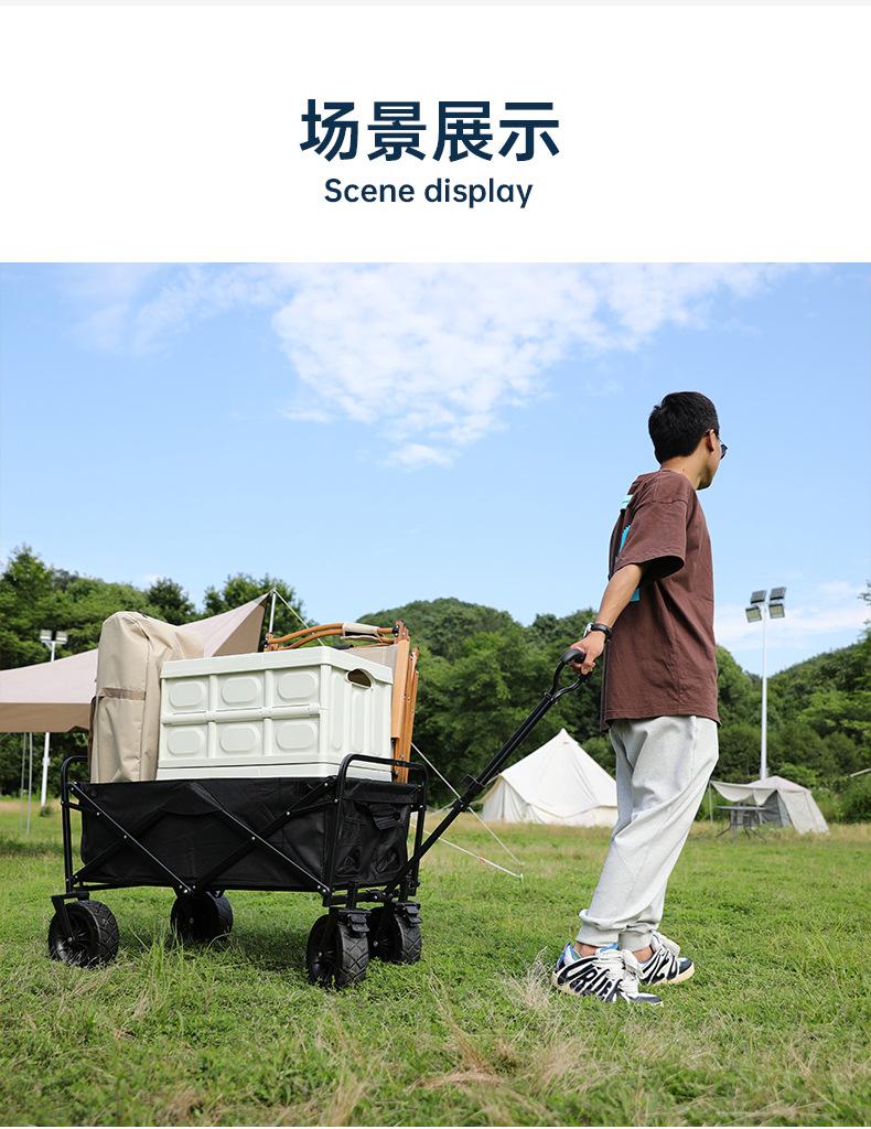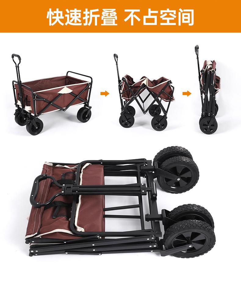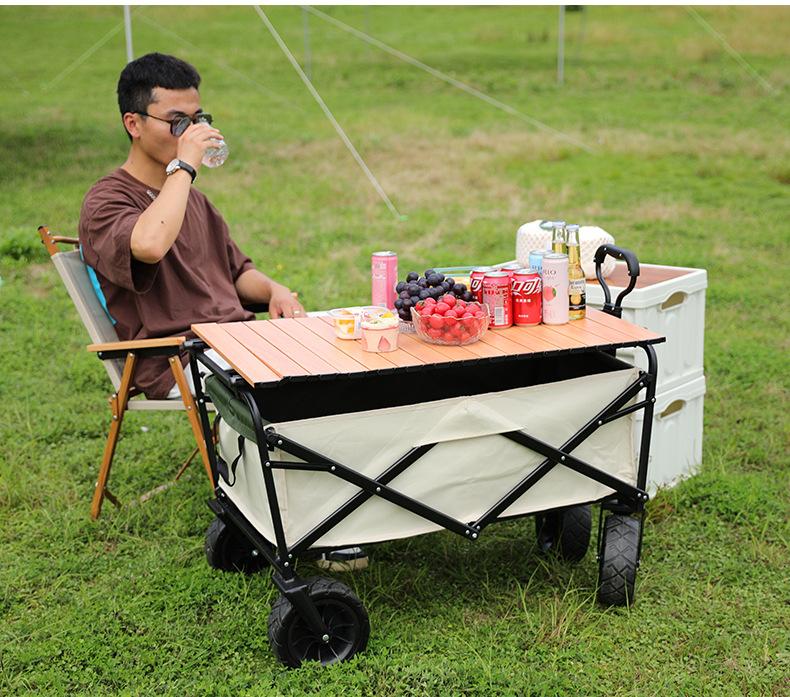 Piquenique ao ar livre Trailer de acampamento dobrável Carrinho de compras de carro de acampamento Carro puxado à mão Carro de compras de quatro rodas Carro de acampamento