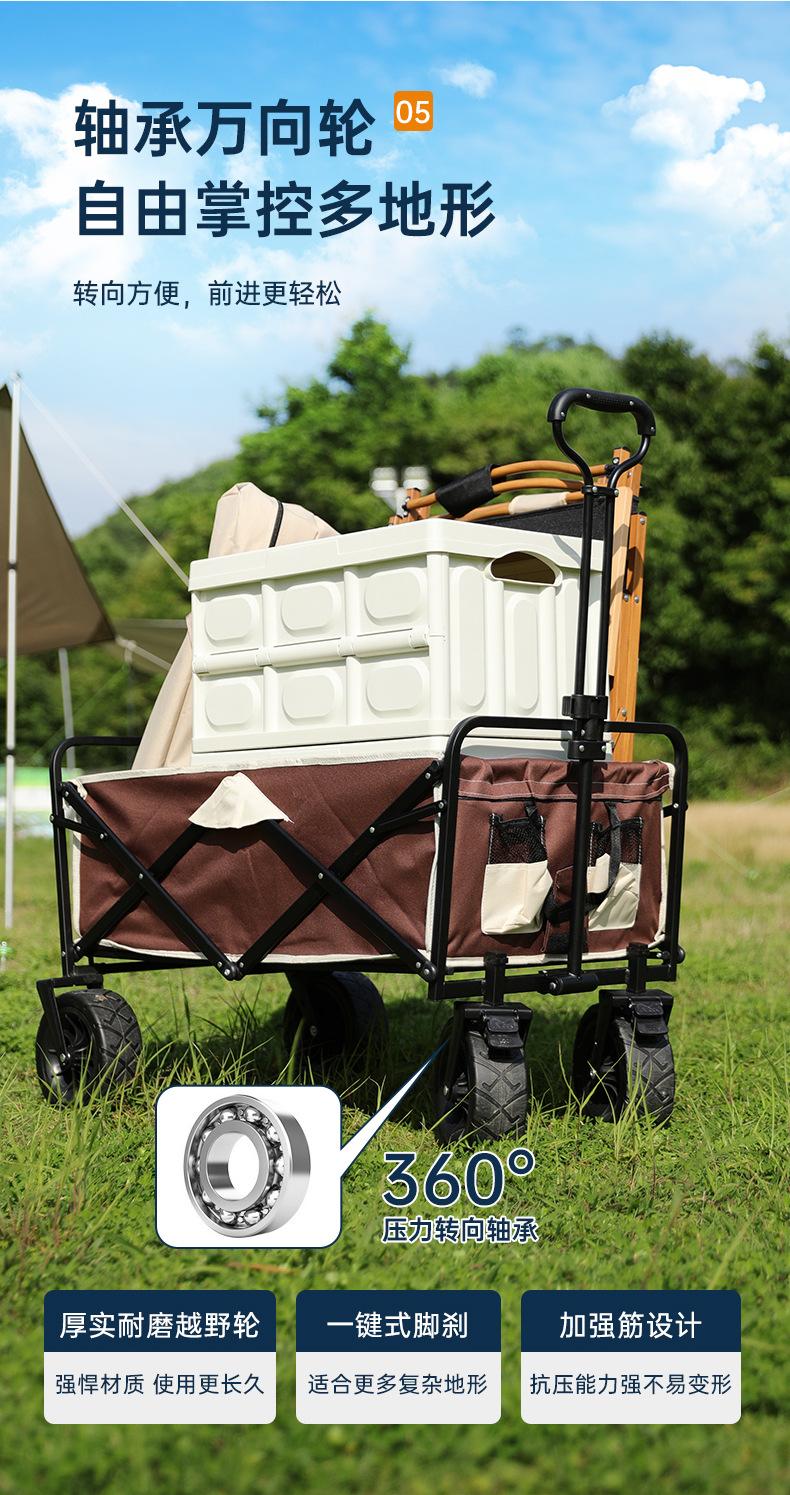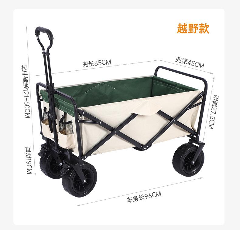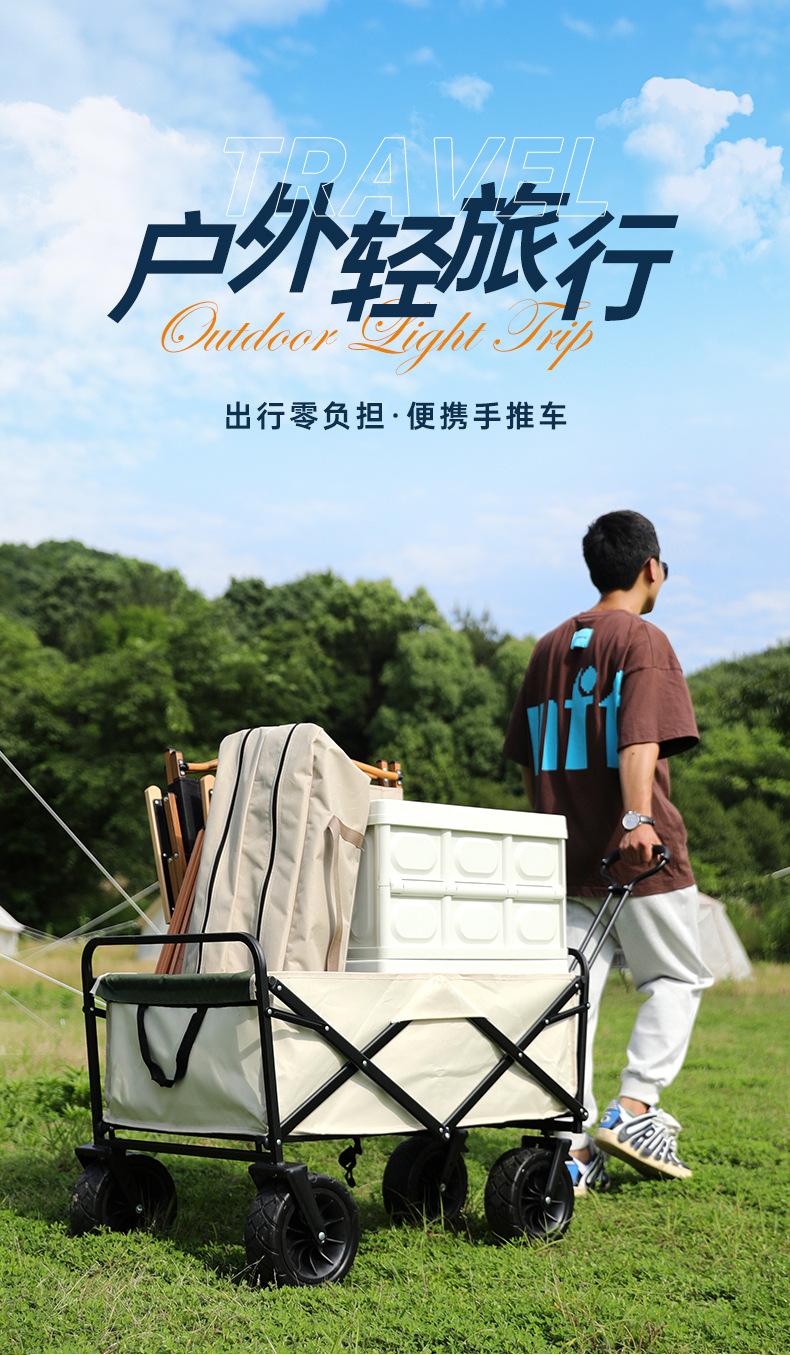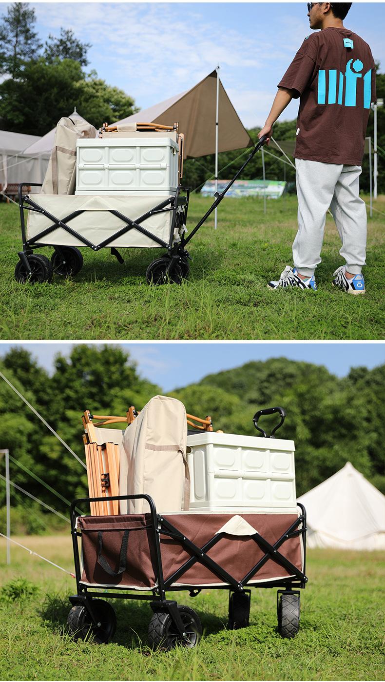 Piquenique ao ar livre Trailer de acampamento dobrável Carrinho de compras de carro de acampamento Carro puxado à mão Carro de compras de quatro rodas Carro de acampamento