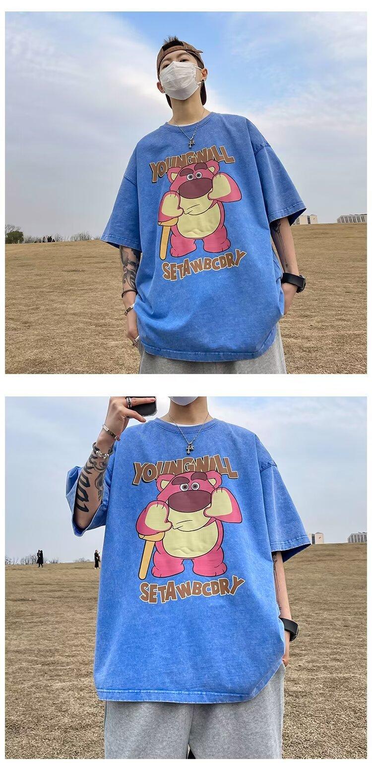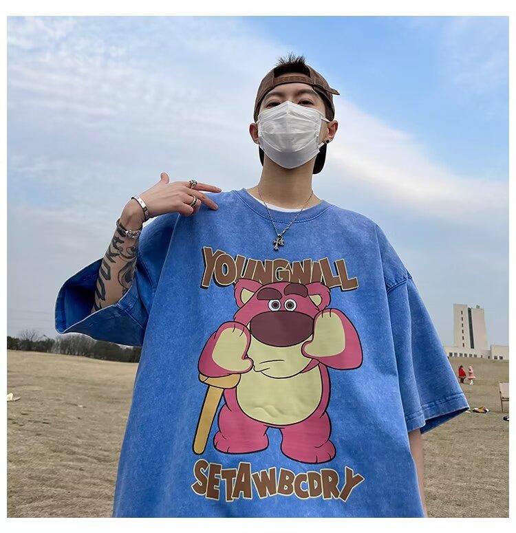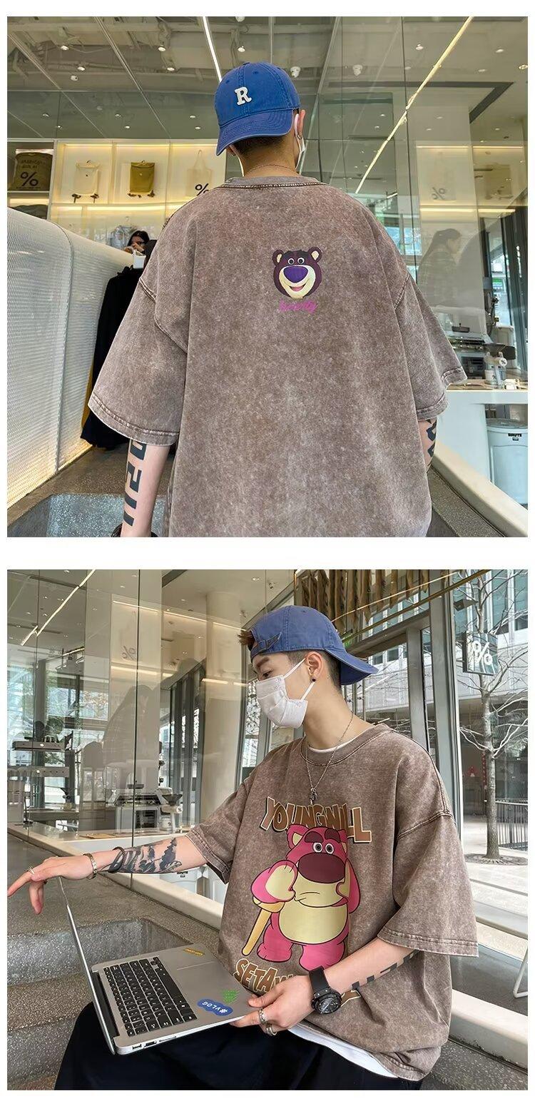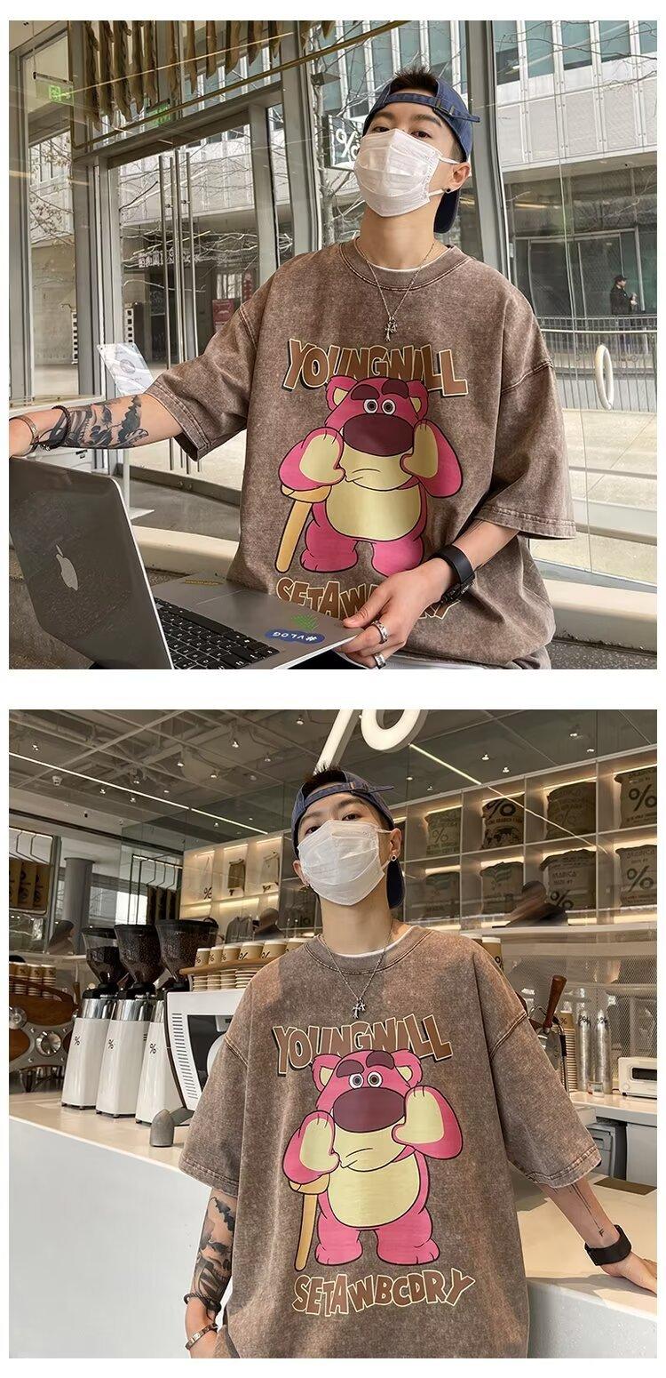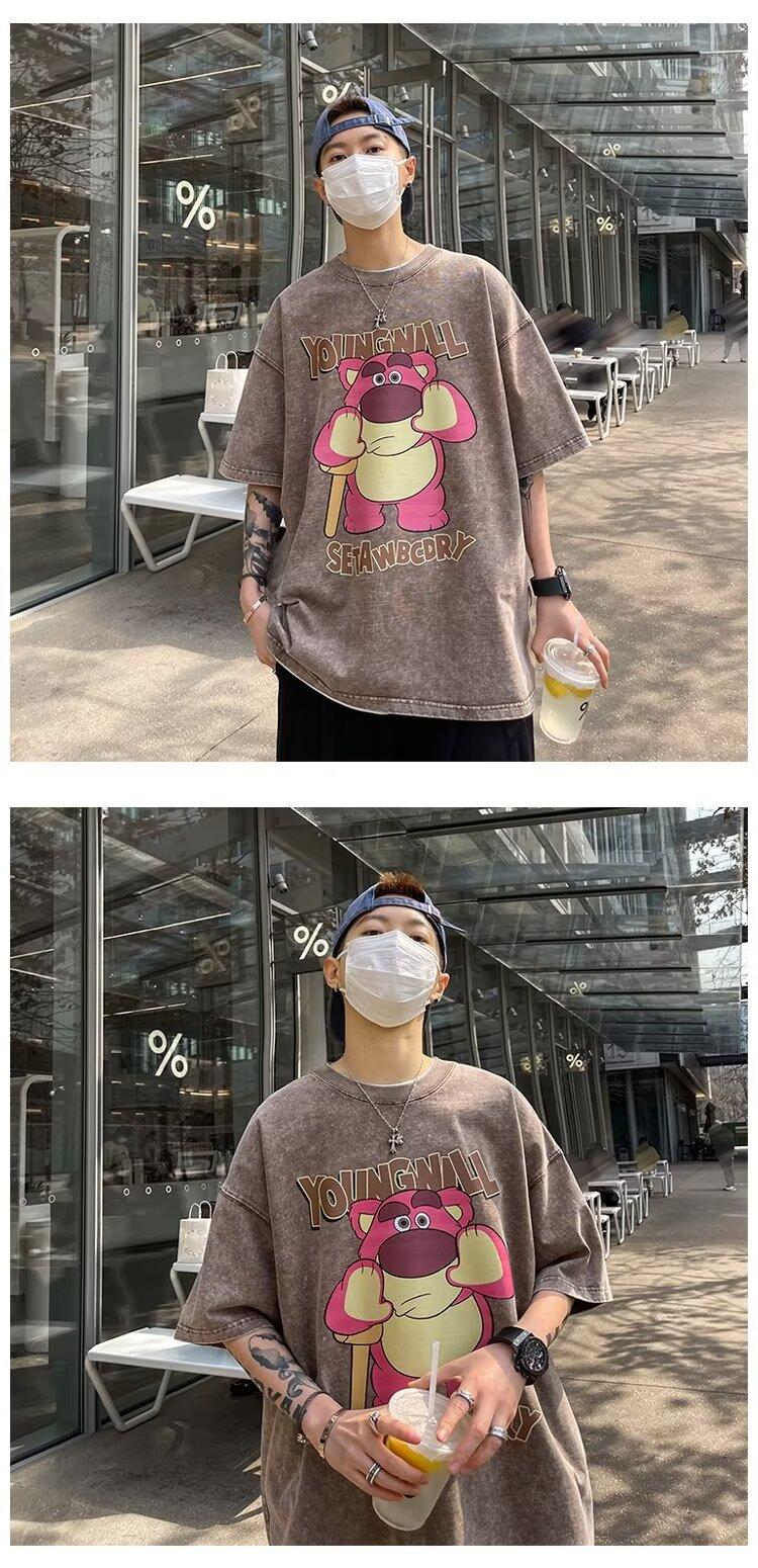 Nova camiseta de manga curta masculina verão estilo coreano tendência estampada meia manga top solto casual tendência marca puro algodão camiseta