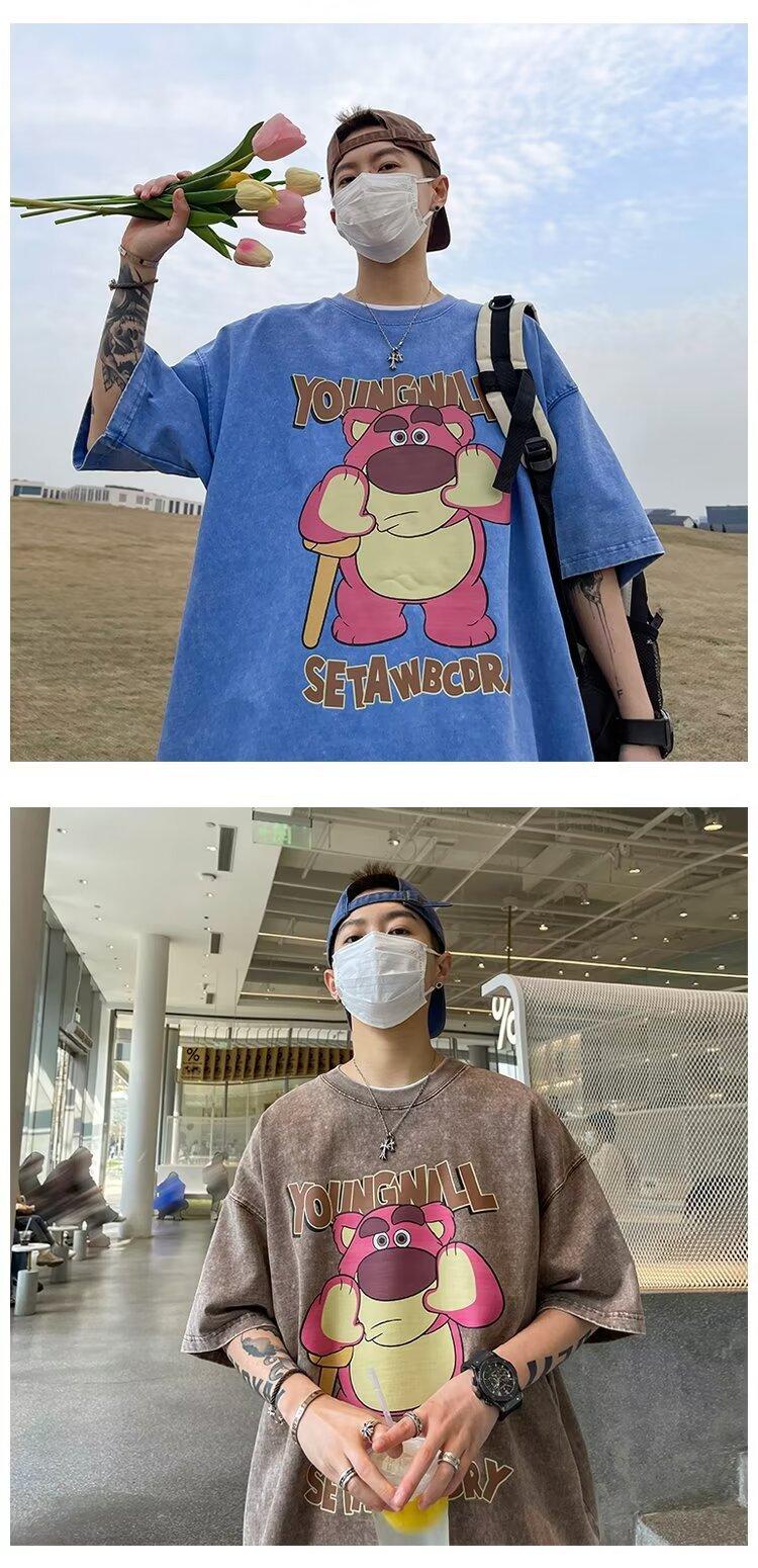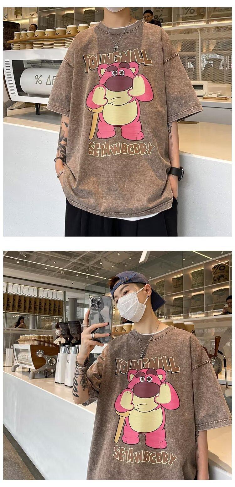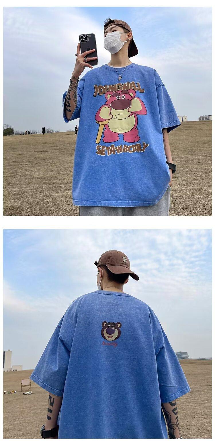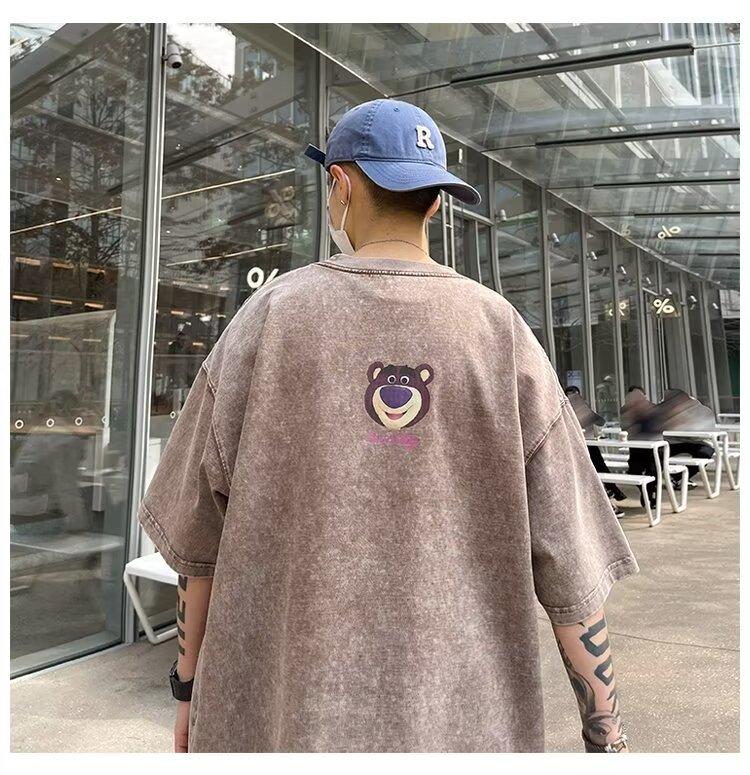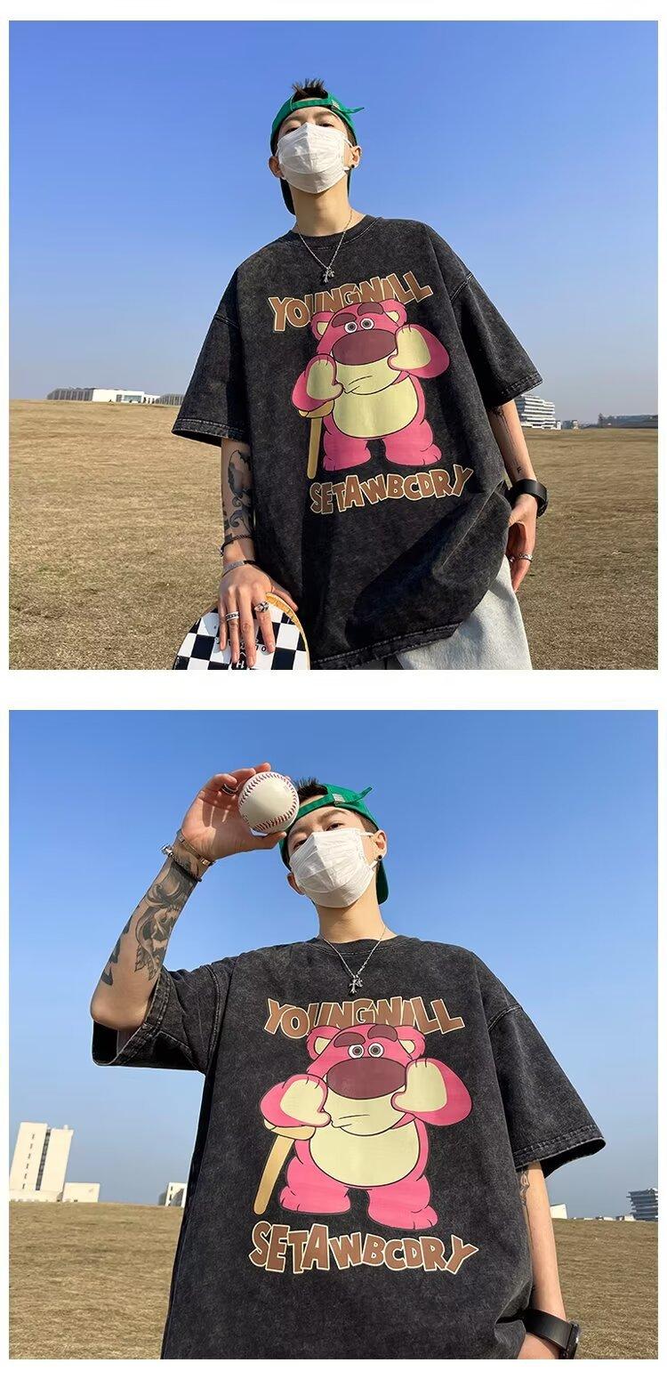 Nova camiseta de manga curta masculina verão estilo coreano tendência estampada meia manga top solto casual tendência marca puro algodão camiseta