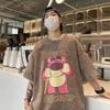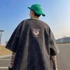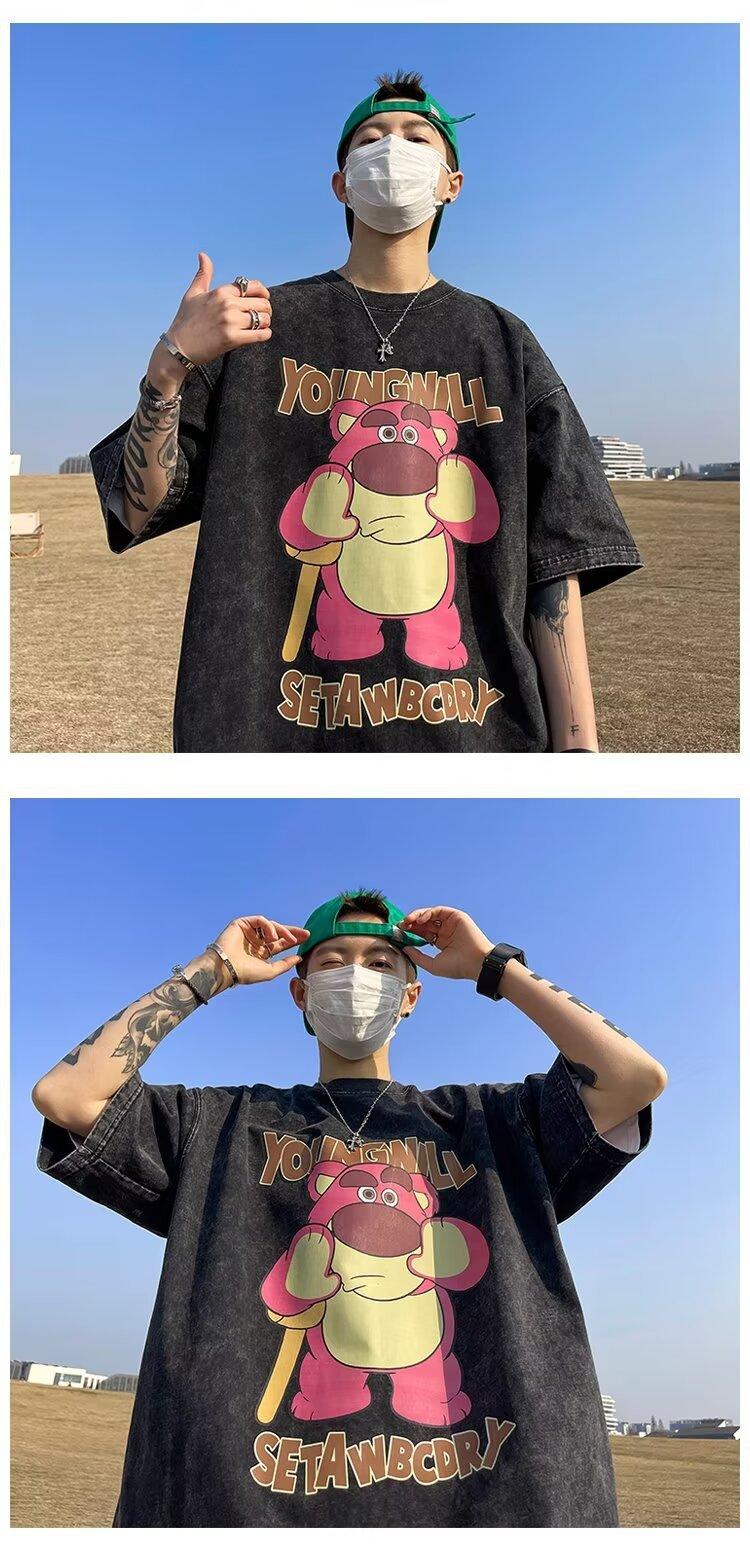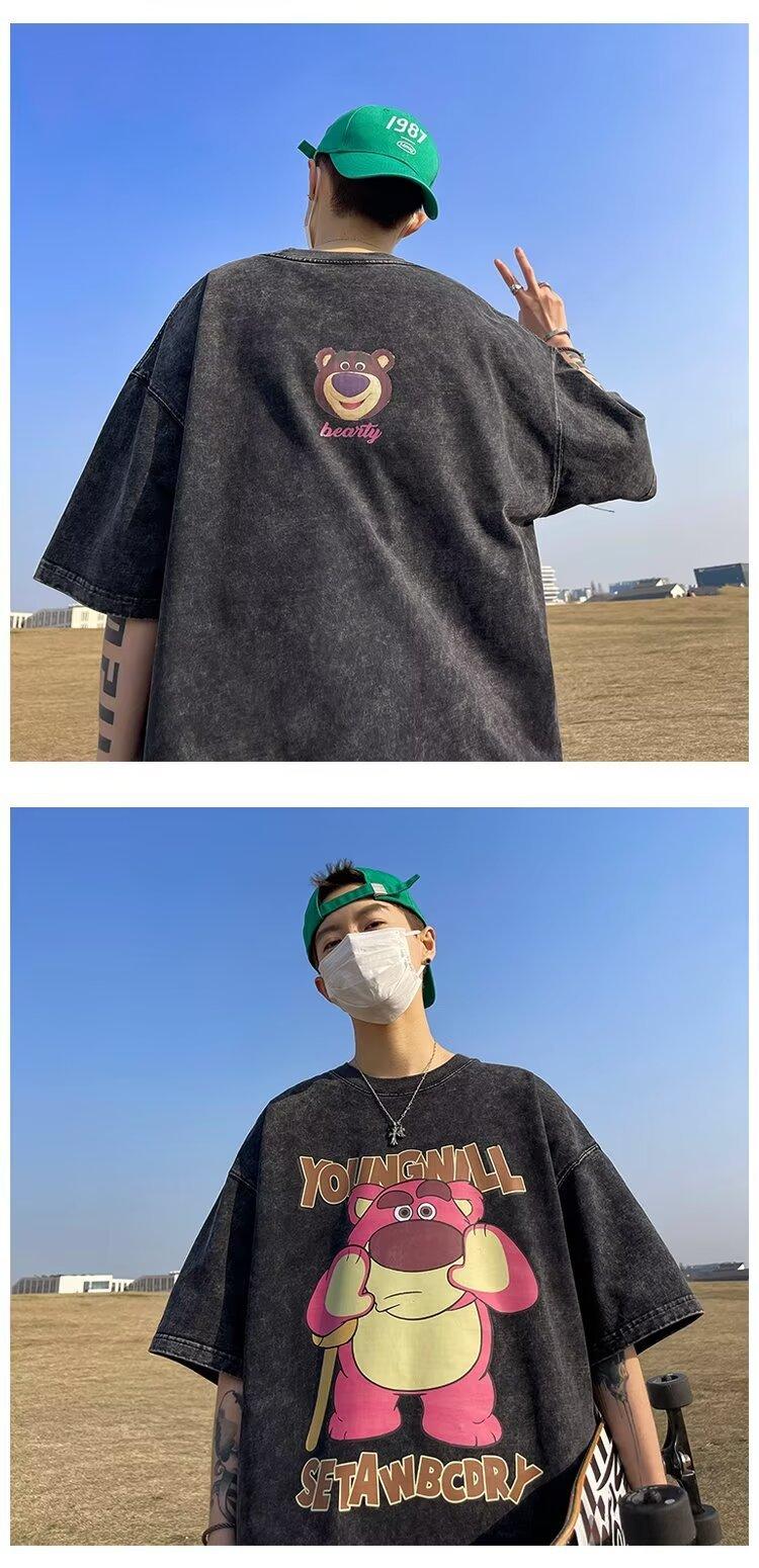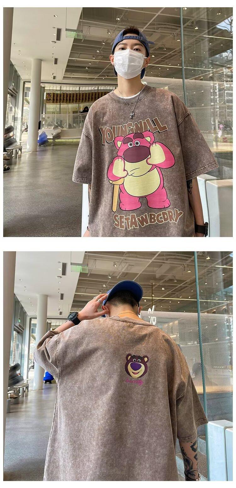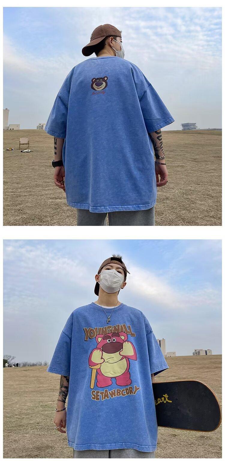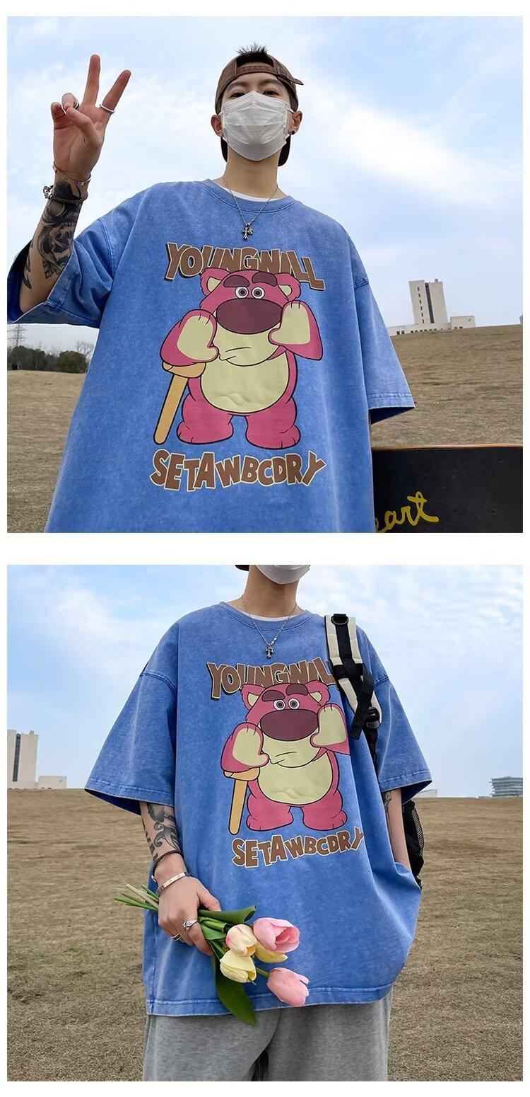 Nova camiseta de manga curta masculina verão estilo coreano tendência estampada meia manga top solto casual tendência marca puro algodão camiseta