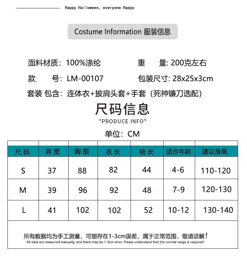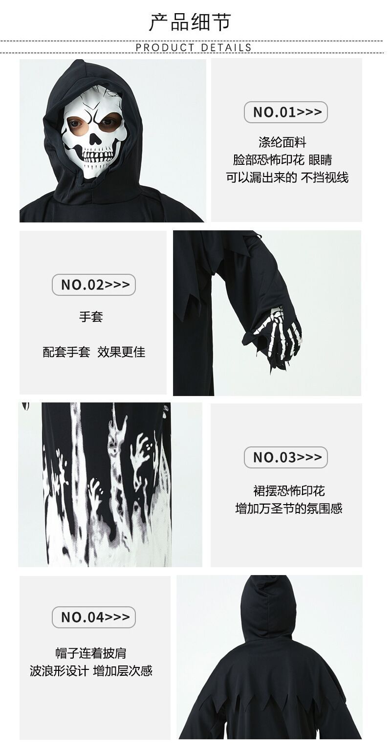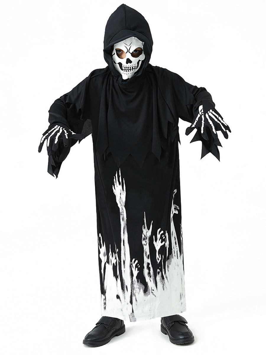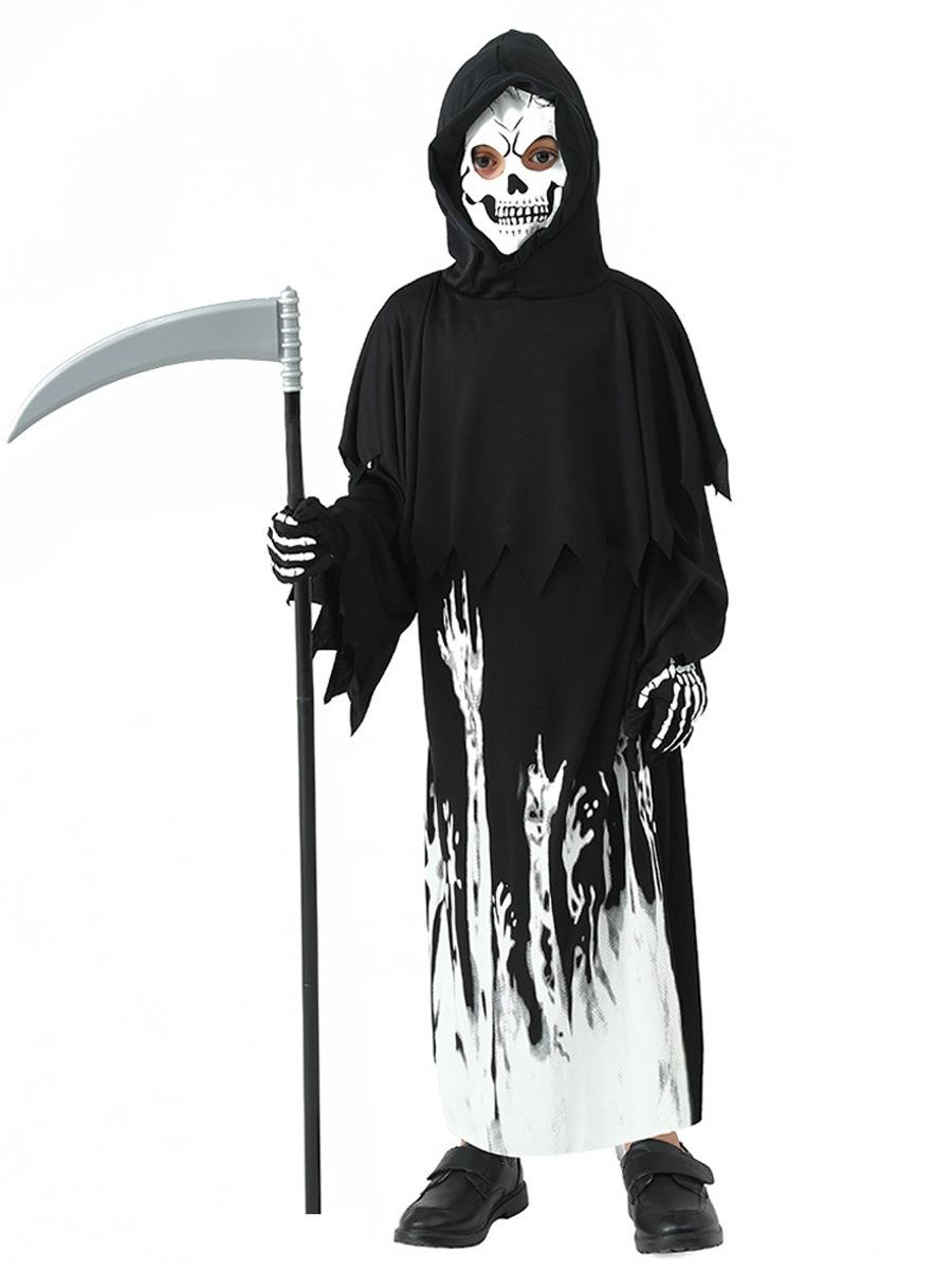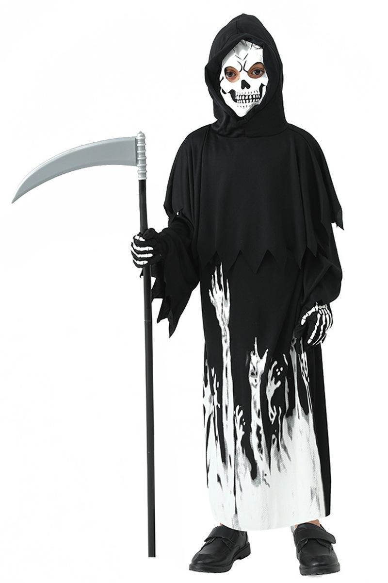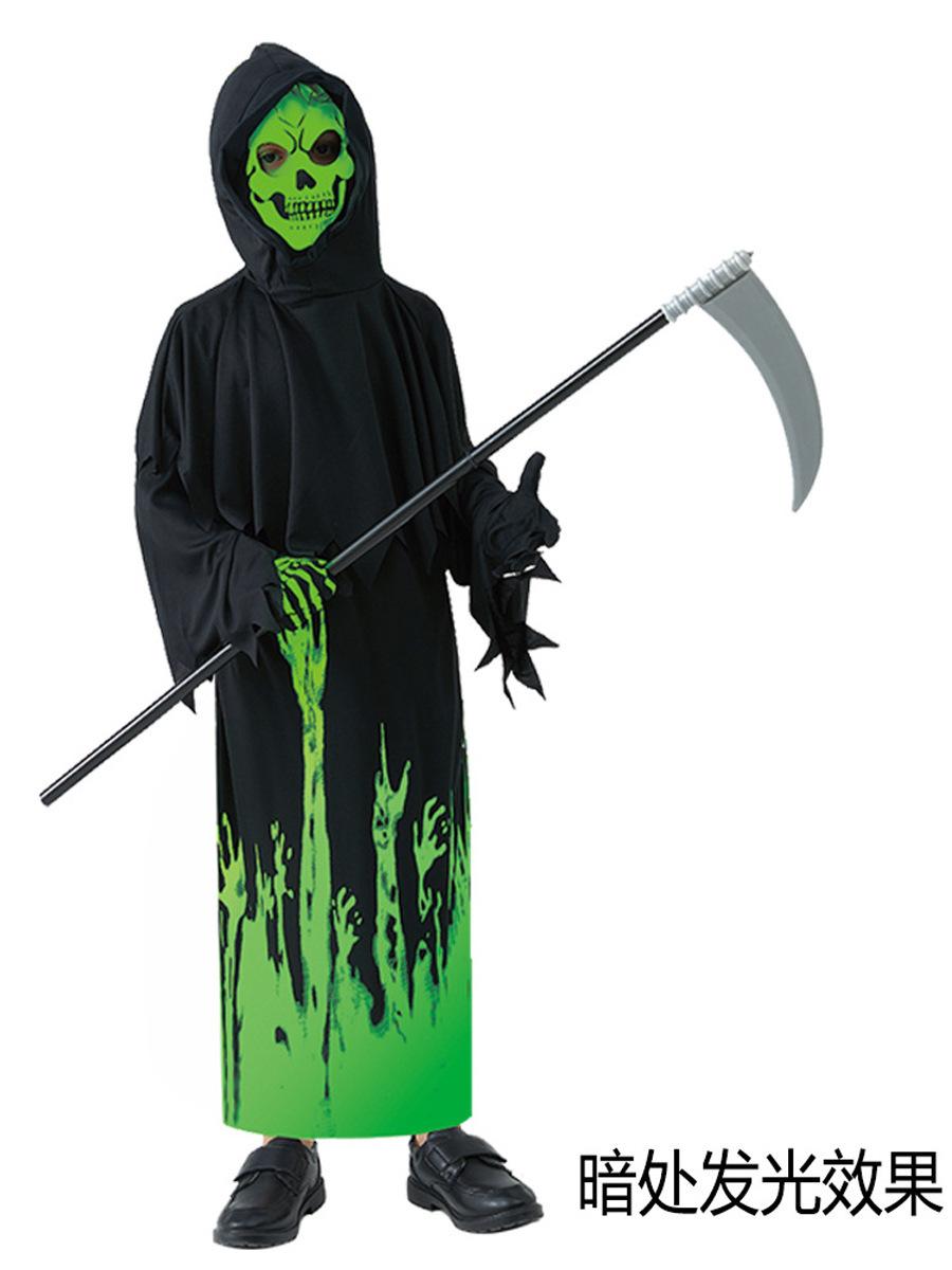O deus da morte do disfarce das crianças do traje de Halloween está vindo a roupa cosplay vampiro europeu e americano do estilo luminoso