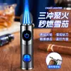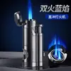 Atacado Novo isqueiro oblíquo à prova de vento isqueiro inflável isqueiro de charuto metal chama azul ao ar livre direto soco leve portátil