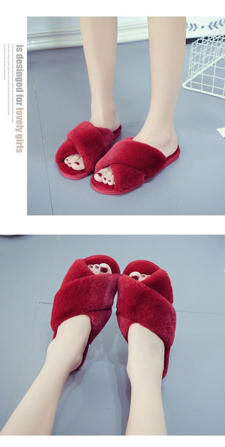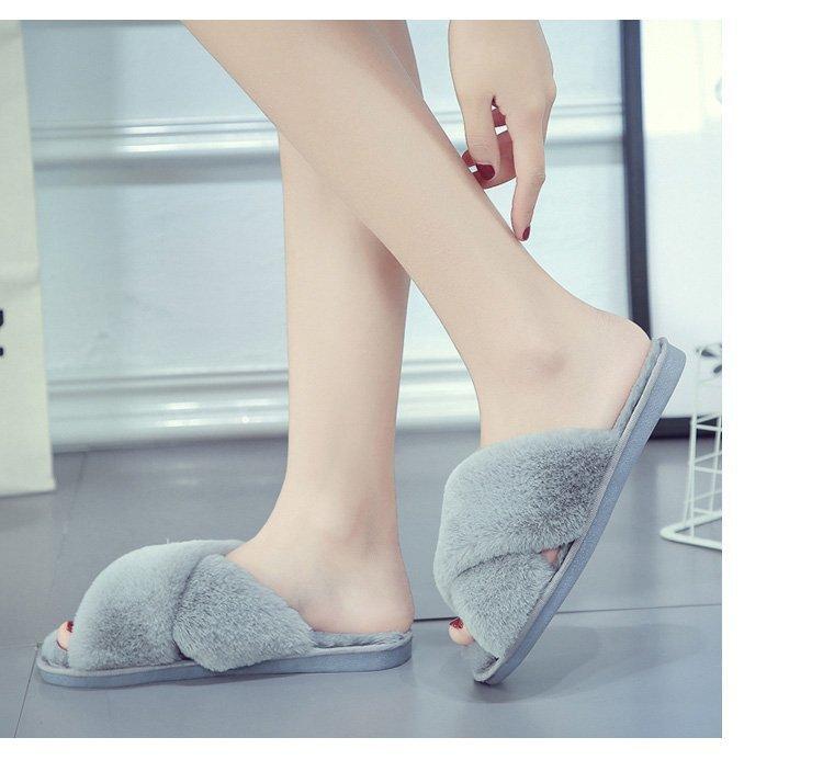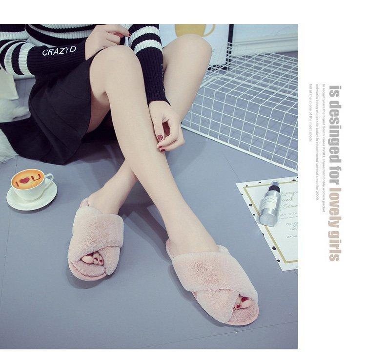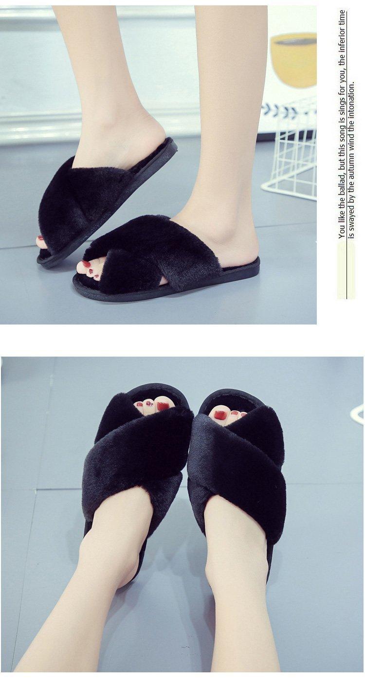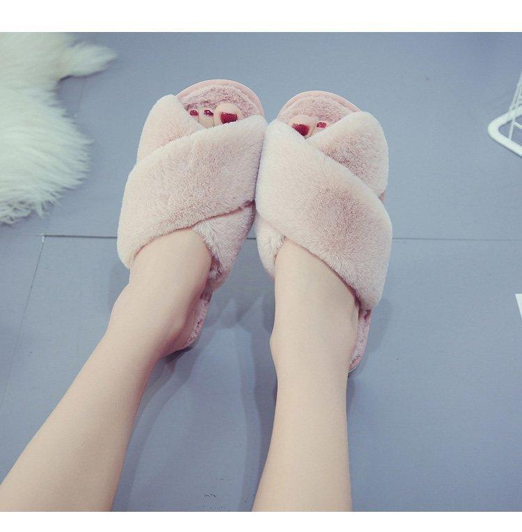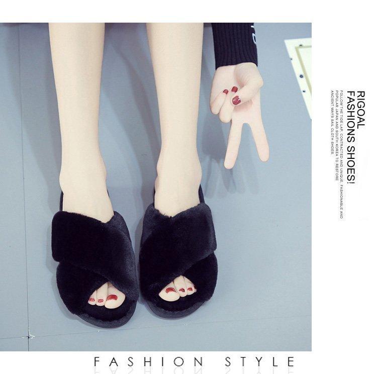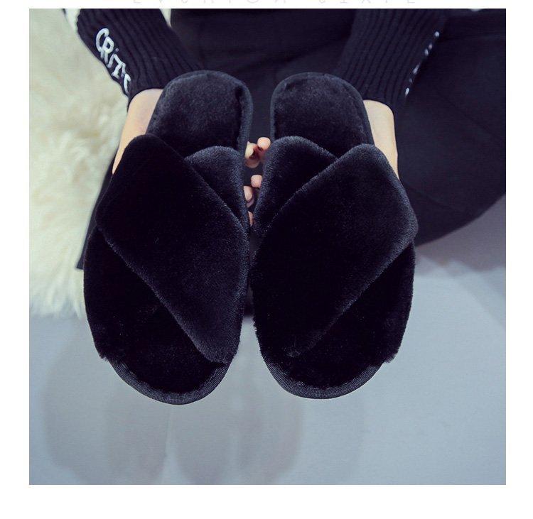 Mao Mao Chinelos Femininos Inverno Casa Interior Pelúcia Plano Piso Mops Biqueira Aberta Crossover Chinelos de Algodão Quente