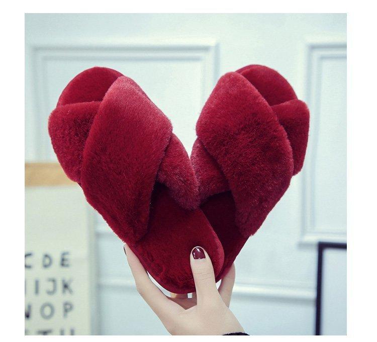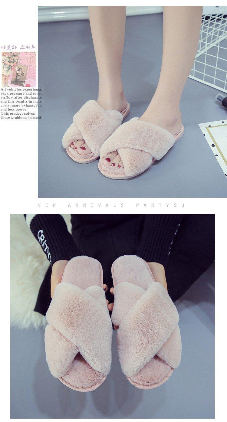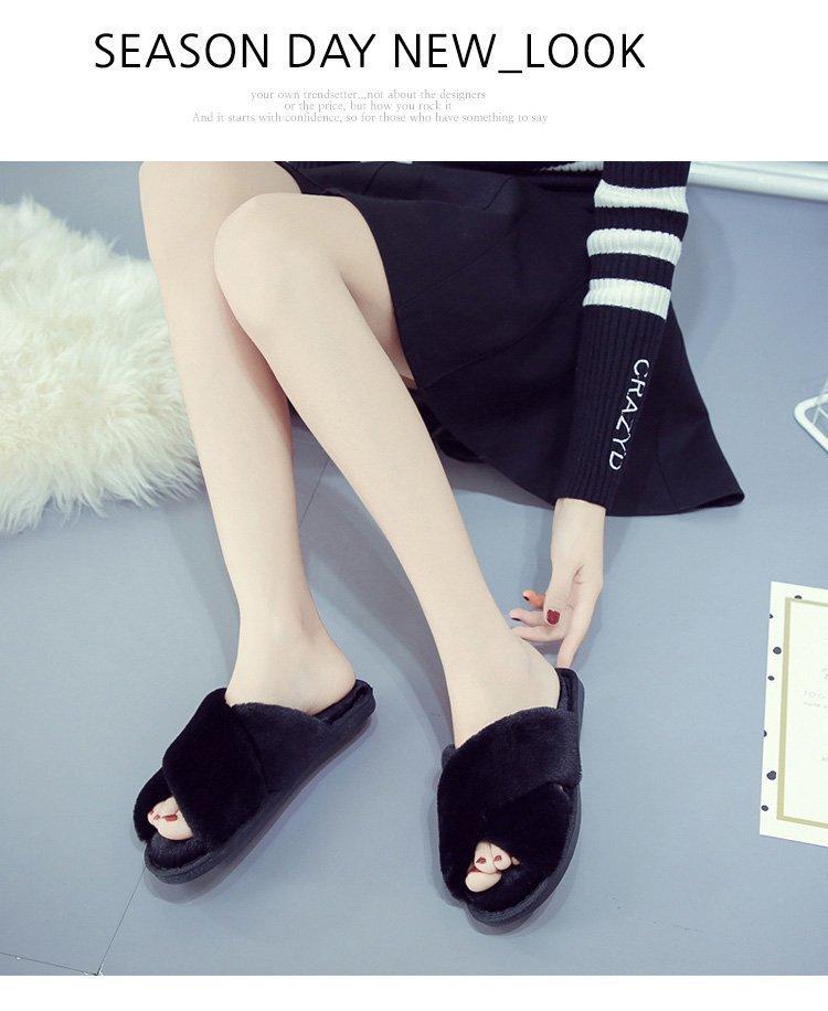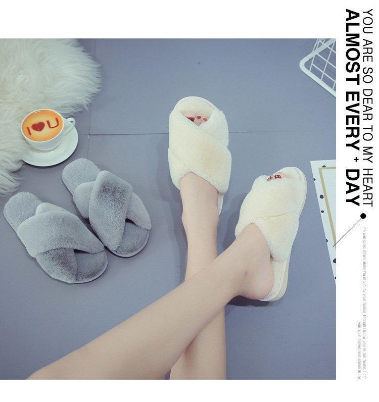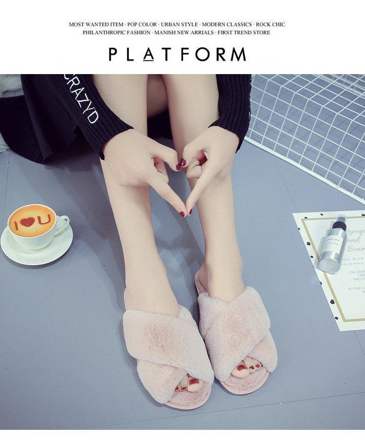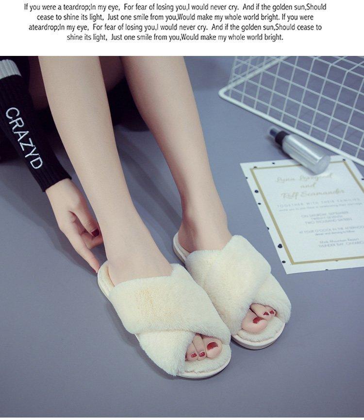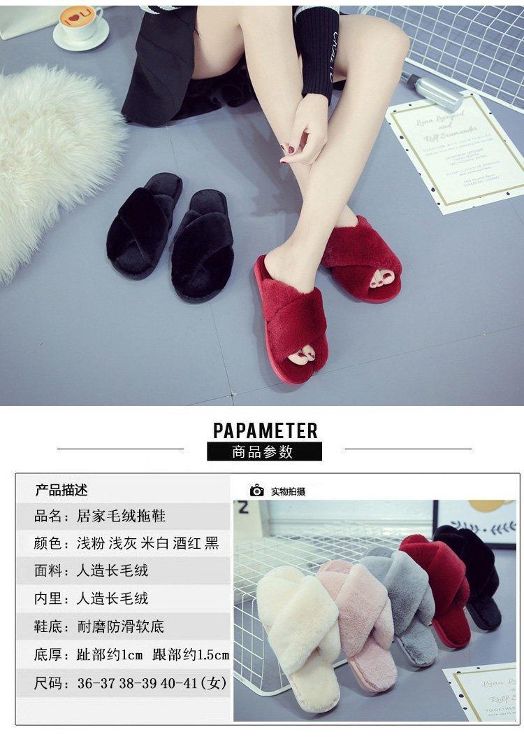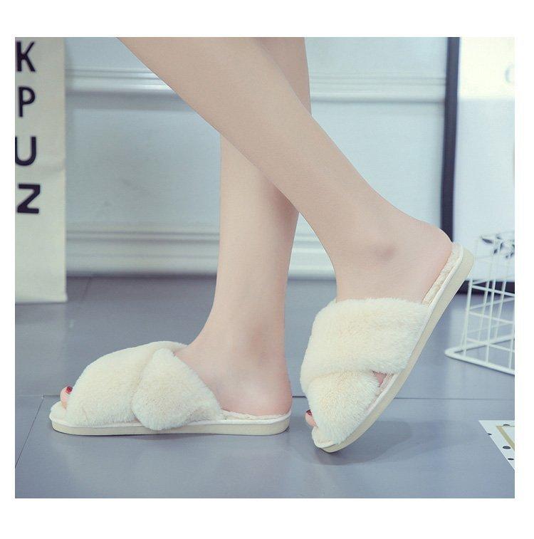 Mao Mao Chinelos Femininos Inverno Casa Interior Pelúcia Plano Piso Mops Biqueira Aberta Crossover Chinelos de Algodão Quente