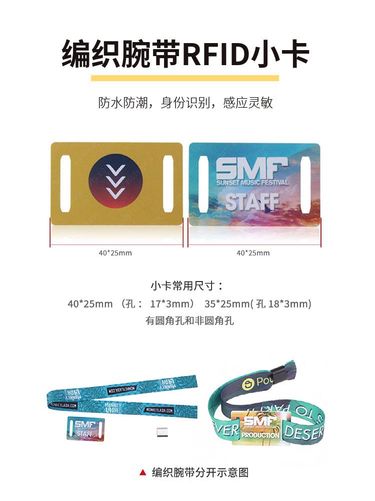Chip Fudan F08 Cartão Pequeno 40*25mm Furo Duplo Impresso Cartão Inteligente Pequeno Pulseira Tecida Fabricante de Cartão IC